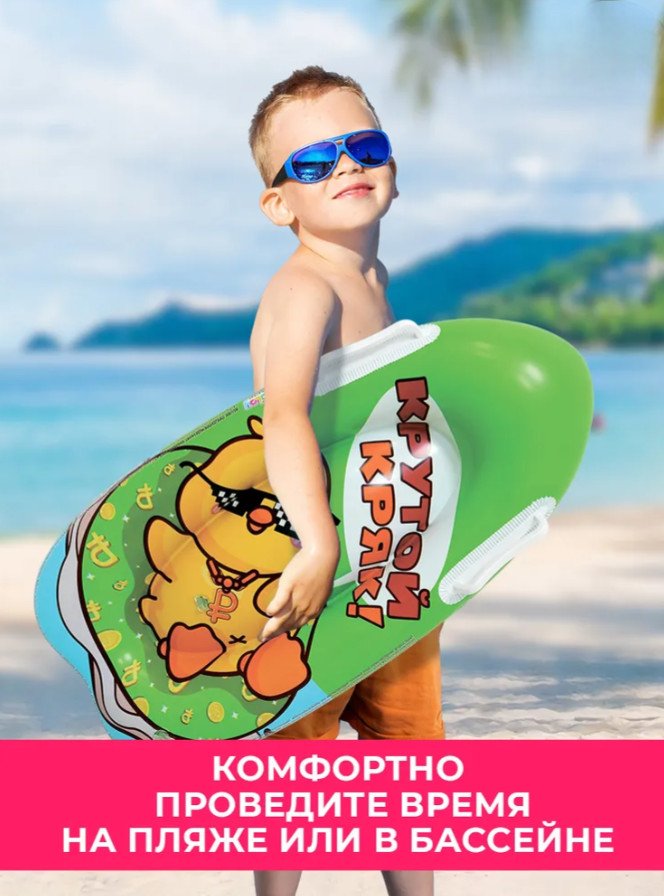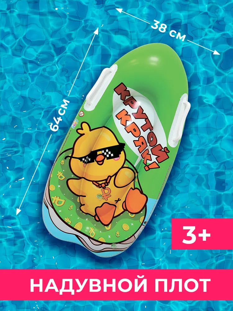 Серия: Крутой кряк Представляем вашему вниманию надувной плот детский для плавания, идеальный для веселого отдыха на воде. Этот надежный и безопасный плот станет отличным компаньоном для ваших маленьких пловцов, позволяя им наслаждаться купанием в бассейне или на пляже. Надувной плот отличается ярким и привлекательным дизайном, который непременно привлечет внимание ребенка. Изготовленный из качественного и прочного материала, надувной плот обеспечивает безопасное использование, идеально подходит для детей. Плот для плавания оснащён удобными ручками, что позволяет юным пловцам легко управлять своим передвижением на воде. В нем достаточно места для свободного движении, что сделает времяпрепровождение ещё более комфортным и безмятежным.