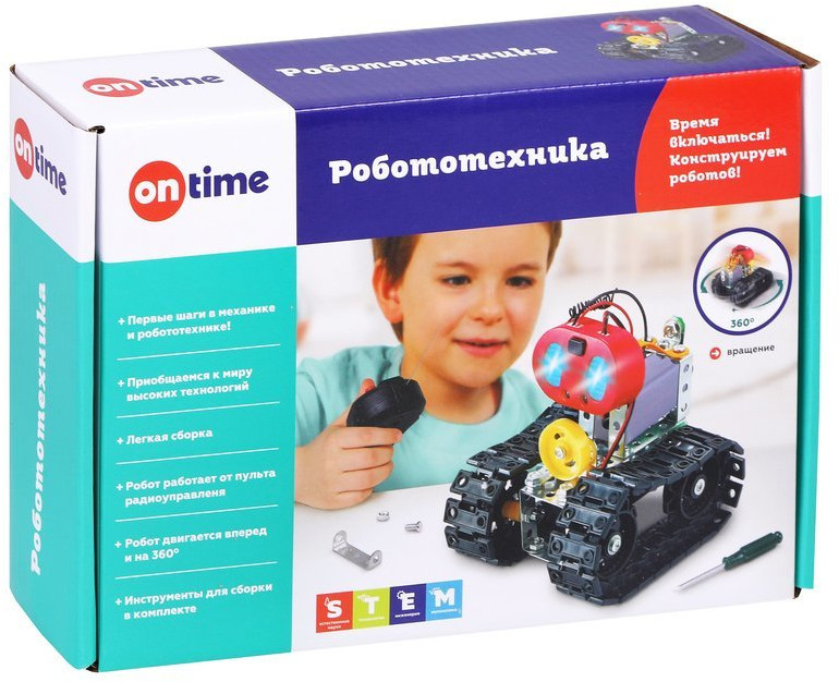 On Time Конструктор электрический «Робот на гусеничном ходу»В данный момент этот товар отсутствует в продаже. Возможно, у нас найдется аналогичный или похожий товар здесь. Серия: Роботехника С игровым конструктором ТМ «ON TIME» ребенок сделает первые шаги в механике и робототехнике! Юный инженер легко и с удовольствием соберет забавного робота на гусеничном ходу, а потом проверит его возможности, задавая команды с пульта управления. Все необходимые инструменты для сборки включены в комплект. |