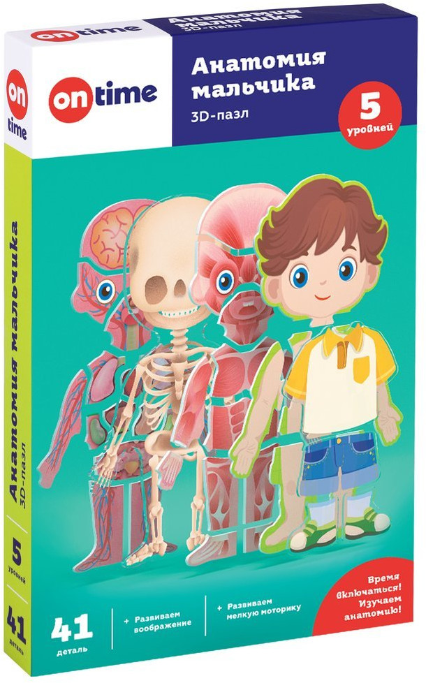 On Time Пазл 3D обучающий для детей «Анатомия мальчика»-60% +26