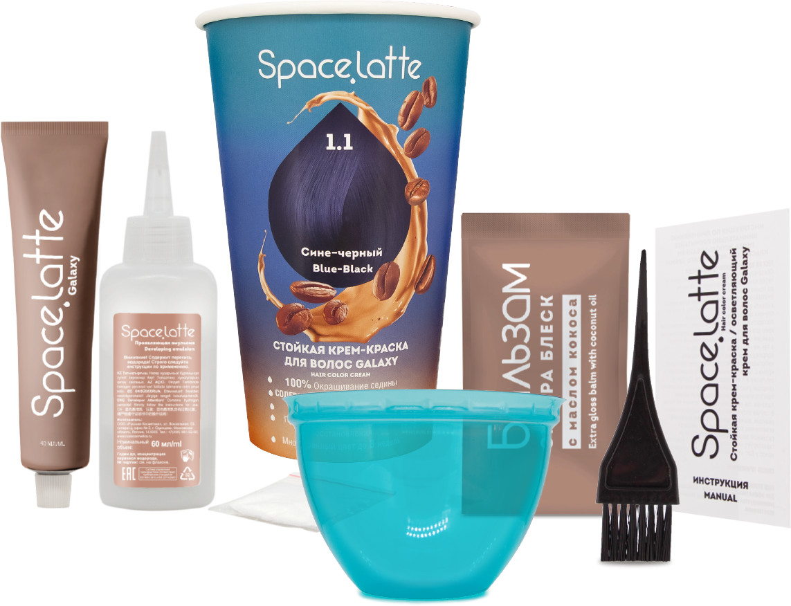 Space.latte Крем-краска для волос стойкая, оттенок 1.1 Сине-черный