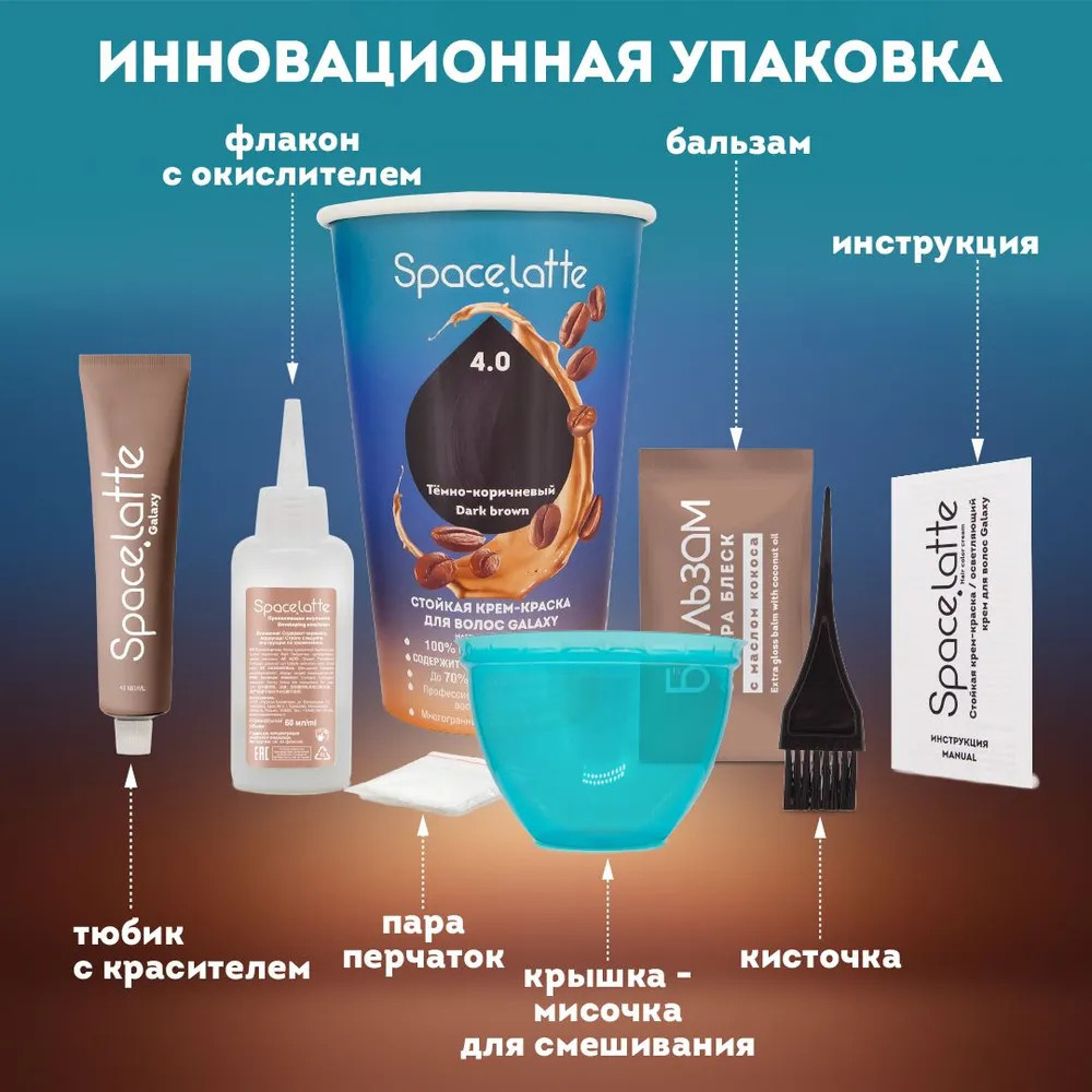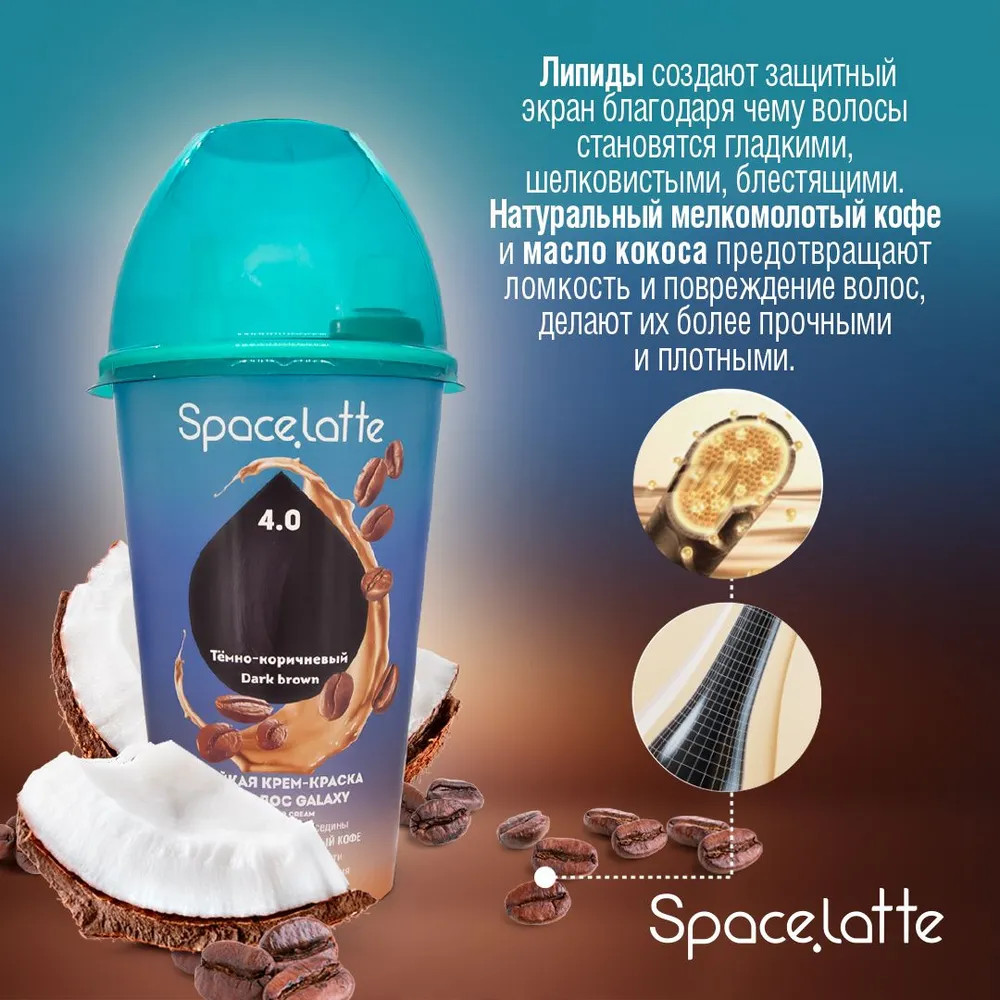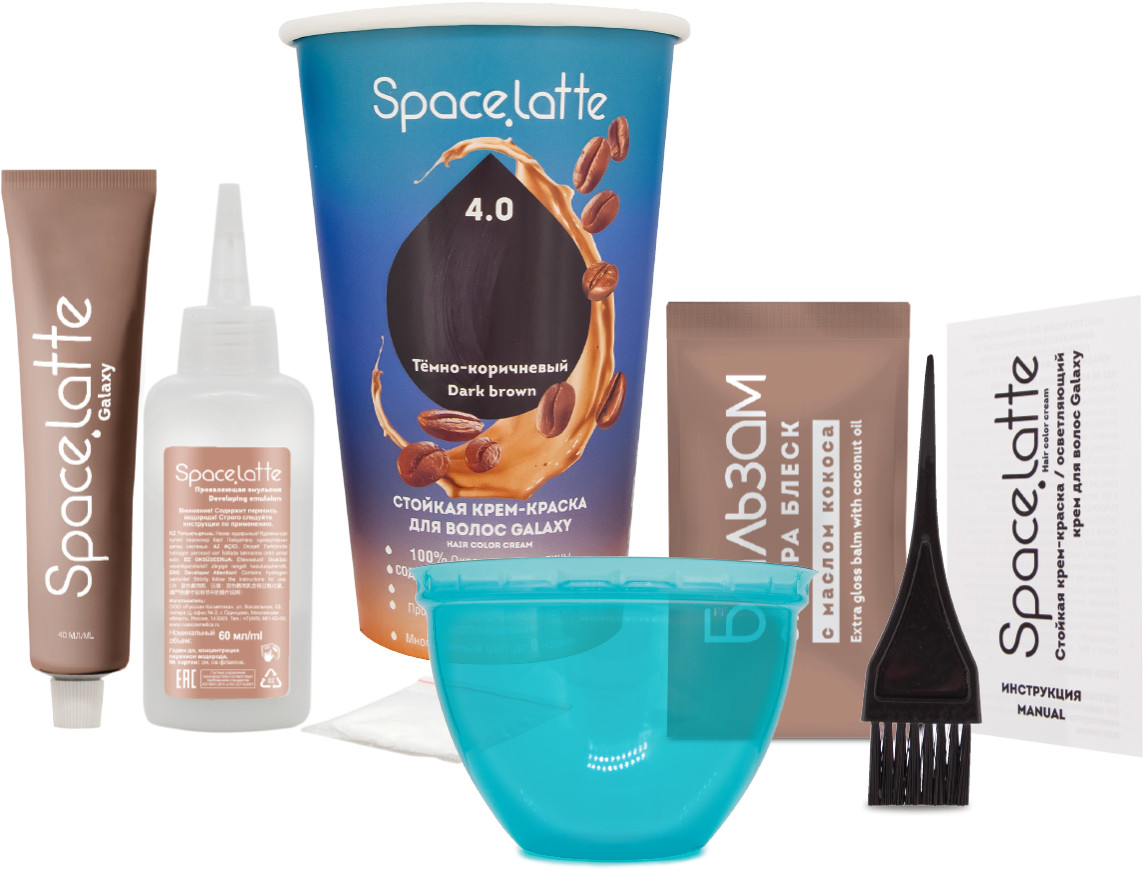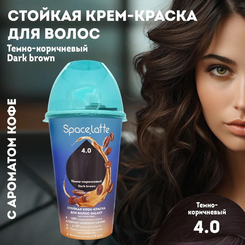 Space.latte Крем-краска для волос стойкая, оттенок 4.0 Тёмно-коричневый