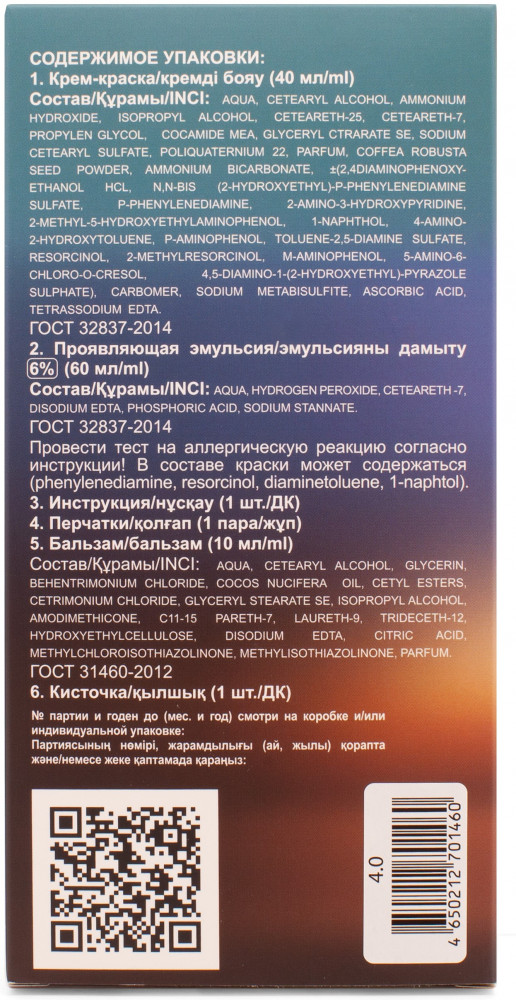 Оттенок: 4.0 Темно-коричневый
