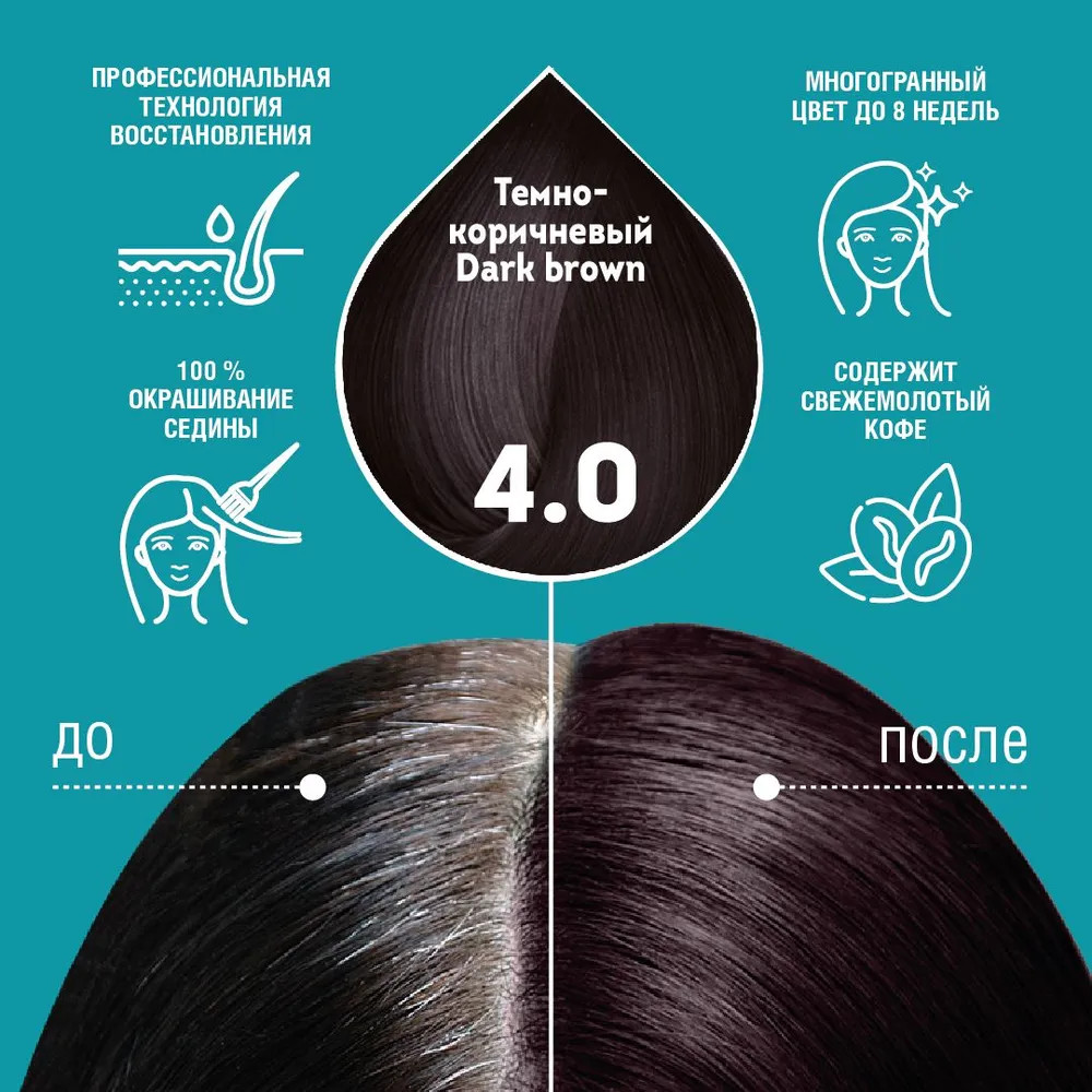 Отзывы «Крем-краска для волос стойкая, оттенок 4.0 Тёмно-коричневый»