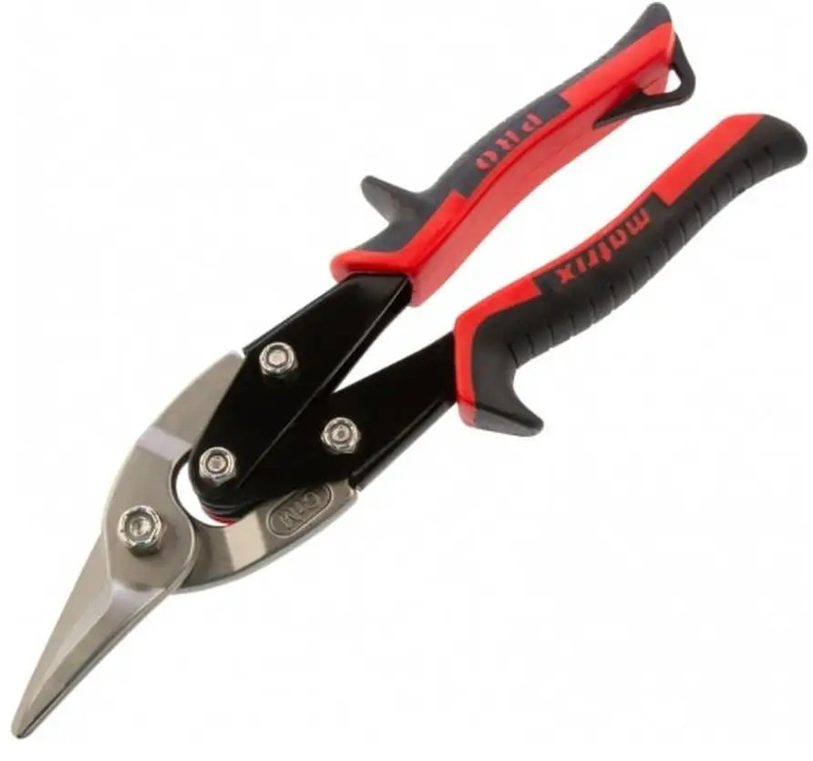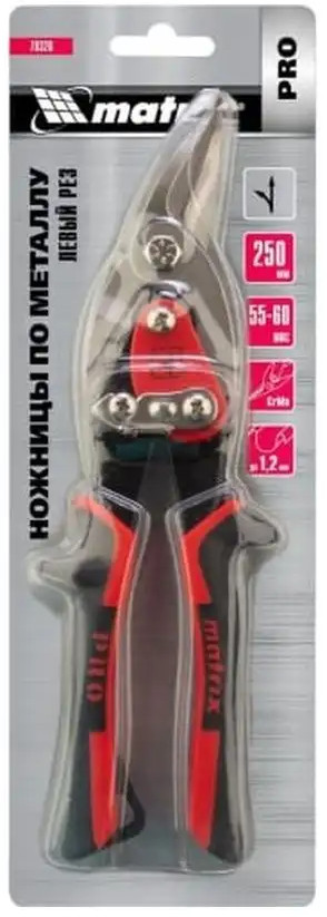 Ножницы по металлу Matrix PRO с левым резом 250 мм (78326) применяются для резки листового металла, а также формирования краев. Губки выполнены из прочной стали, оснащены насечками, предотвращающими выскальзывание материала. Ножницы оснащены двойным рычажным механизмом. Двухкомпонентные рукоятки не скользят в руке, что позволяет снизить нагрузку на кисть при длительном применении. Губки пряморежущих ножниц по металлу 250 мм. Выполнены из прочной стали, стойкой к механическим воздействиям. Двухкомпонентные рукоятки обеспечивают надежный захват, а протекторы необходимы для безопасной работы и комфорта.
