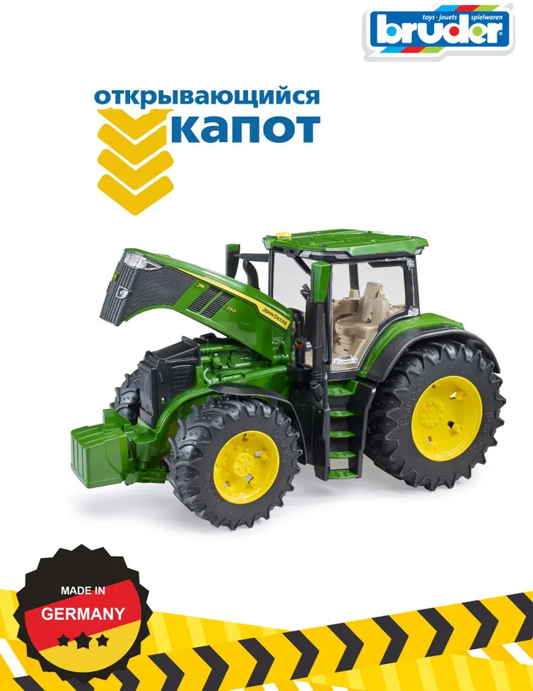💳 Оплатить за товар можно при получении 🇰🇿 Есть бесплатная доставка по Казахстану от 1 дня 🎁 Копите бонусы с каждой покупки Bruder — отличный подарок для мальчика любого возраста. Автомобили и специальная техника немецкого производителя вызывают восхищение детей, игрушки долговечные и надежные. Тракторы «John Deere» серии 7R сочетают в себе малую общую массу и высокую производительность. Этот трактор является новинкой компании Bruder, его можно применить в мире сельскохозяйственной тематики. Капот открывается и демонстрирует впечатляющий двигатель. Двери можно открыть и предоставить опционально доступное пространство для фигурок Bworld в современной кабине. Типичными для Bruder являются отличная управляемость и комфорт езды благодаря установленному качающемуся мосту, а также удлинителю рулевого управления, который можно вставить через сдвижную крышу. Регулируемая по высоте задняя сцепка совместима со всеми прицепами серии Professional, которые также можно загружать с помощью фронтального погрузчика. На этот трактор можно установить все прицепы сельскохозяйственной линейки Bruder. |