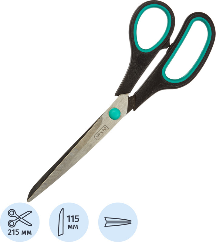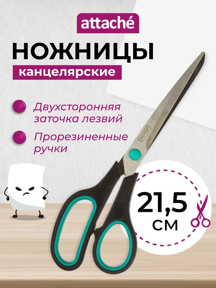 Канцелярские ножницы являются универсальным инструментом для дома, офиса и школы. С ними решение разнообразных задач становится легче и быстрее. Они замечательно режут бумагу, плотный картон и ткань. Лезвия изготовлены из высококачественного металла. Двухсторонняя заточка обеспечивает великолепное качество резки. Ножницы оснащены анатомическими пластиковыми ручками с резиновыми вставками. Их очень удобно держать в руке, они не скользят во время работы. Общая длина ножниц 215 мм, длина металлических лезвий — 115 мм.