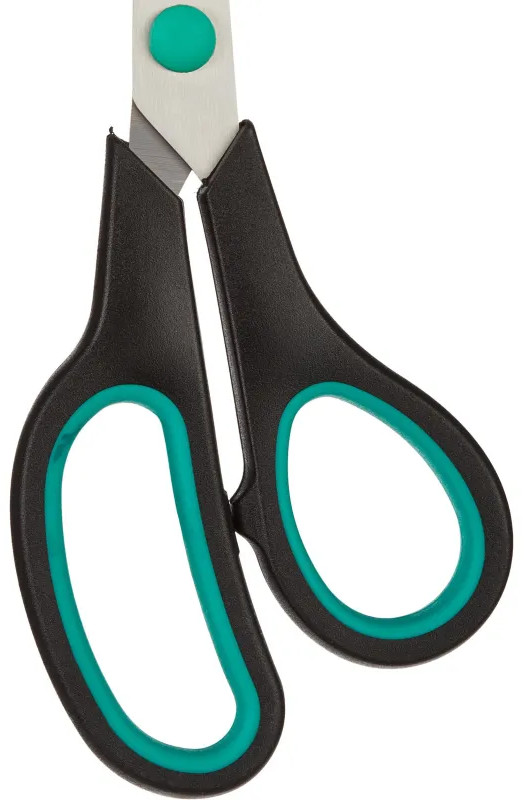 Канцелярские ножницы являются универсальным инструментом для дома, офиса и школы. С ними решение разнообразных задач становится легче и быстрее. Они замечательно режут бумагу, плотный картон и ткань. Лезвия изготовлены из высококачественного металла. Двухсторонняя заточка обеспечивает великолепное качество резки. Ножницы оснащены анатомическими пластиковыми ручками. Их очень удобно держать в руке, они не скользят во время работы. Общая длина ножниц 195 мм, длина металлических лезвий — 95 мм.