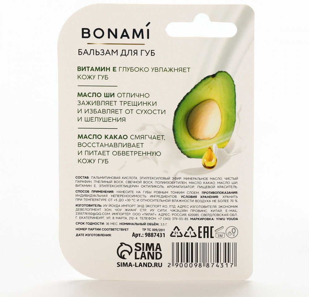 BONAMI Бальзам для губ «Питание и увлажнение»