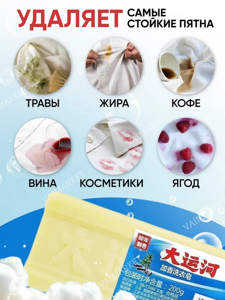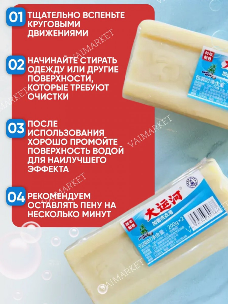 Забудьте о въевшихся пятнах и тусклой одежде! Китайское отбеливающее мыло — ваш незаменимый помощник в борьбе с загрязнениями любой сложности. Оно эффективно удаляет жир, кровь, землю, соки, пыль и другие бытовые пятна с цветных и белых тканей, возвращая им яркость и свежесть. Мощный пятновыводитель и отбеливатель. Секрет — в формуле с оптическими отбеливателями: они проникают в волокна ткани, отражают свет и делают одежду визуально светлее и чище, не повреждая структуру. Безопасность и забота о коже. Мыло содержит глицерин и натуральные компоненты, поэтому идеально подходит даже для стирки детских и деликатных вещей. Не сушит кожу рук, не вызывает раздражений, не содержит флуоресцентных агентов. Универсальность использования. Подходит не только для одежды, но и для обуви — после стирки ваша пара будет выглядеть как новая! Особенно эффективно справляется с белой подошвой и тканевыми кроссовками. Удобная упаковка. В комплекте 2 куска по 200 г (всего 400 г) — хватит надолго! С чудо-мылом из Китая стирка перестанет быть рутиной — она станет удовольствием. Одежда снова засияет, а вы почувствуете уверенность в каждой детали своего образа!