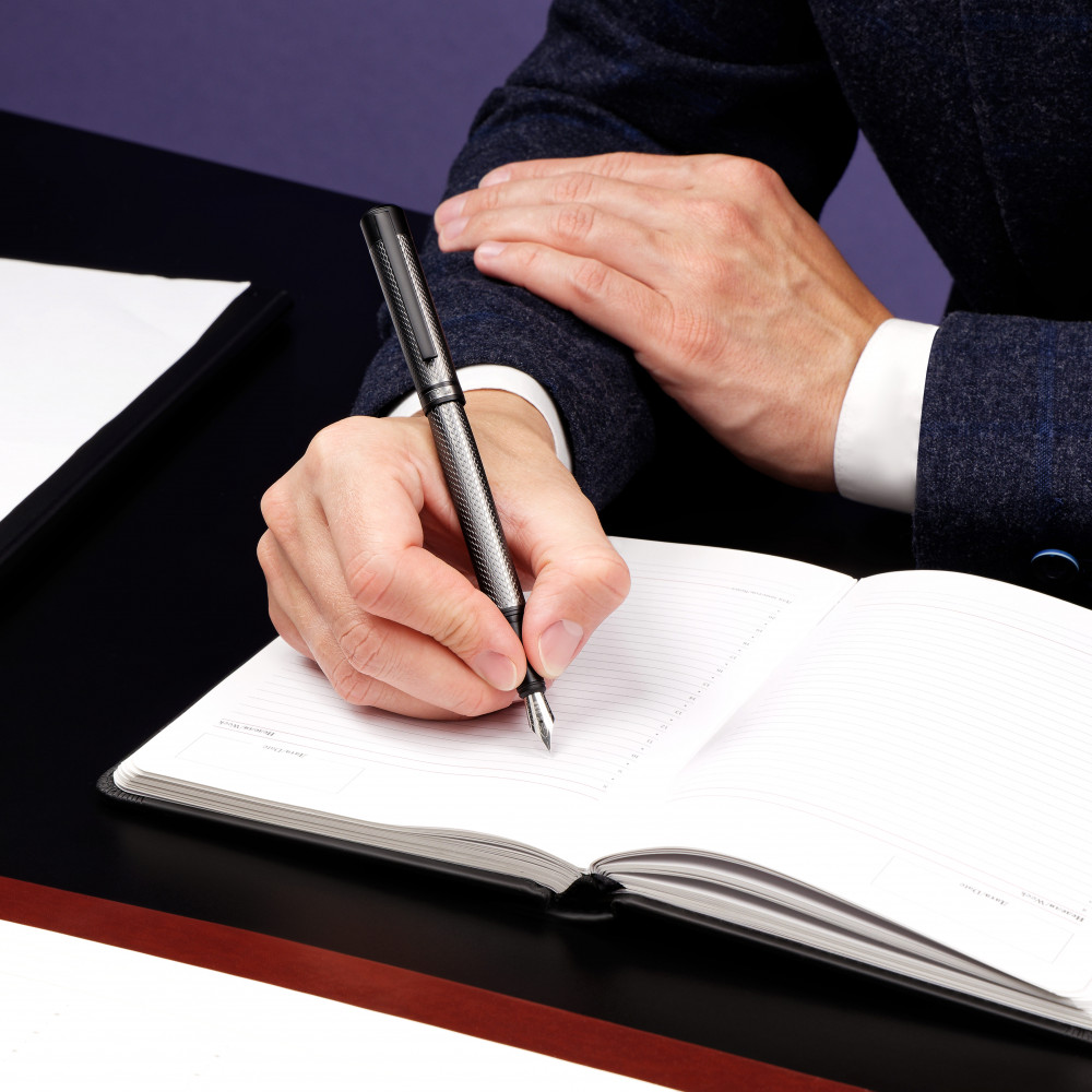 Delucci Ручка перьевая «Antica»В данный момент этот товар отсутствует в продаже. Возможно, у нас найдется аналогичный или похожий товар здесь. Серия: Antica Delucci Antica — перьевая ручка в триаде линейки Delucci Antica. Как чёрный графит — минерал класса самородных элементов, так и эта ручка — самородный элемент в подарочном сегменте письменных принадлежностей. Корпус цвета антрацит с узором, напоминающим змеиную кожу, не оставит равнодушным самых преданных поклонников стиля, строгости и при этом изысканности атрибутов. Перо из иридия отвечает за прочность и качество. Клип сделан из нержавеющей стали, он позволяет фиксировать ручку на ежедневниках, блокнотах и карманах одежды. |