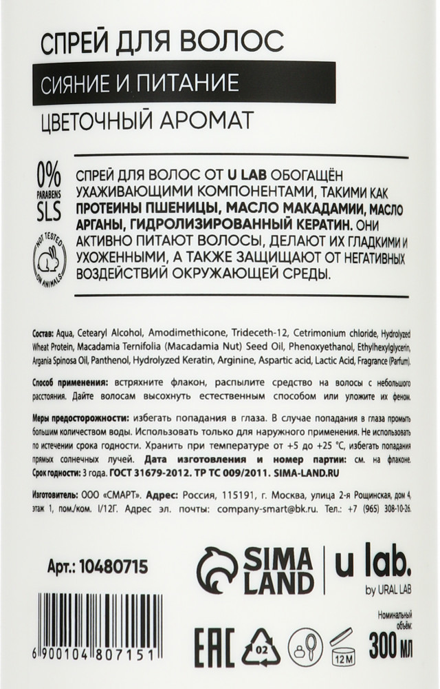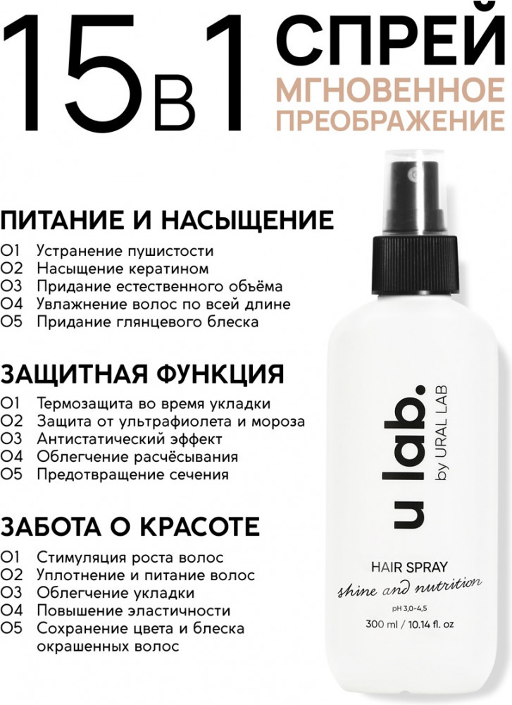 Ural lab Спрей для волос термозащитный «Блеск и Питание»-25% +25