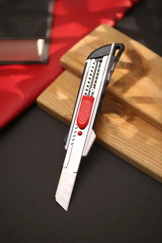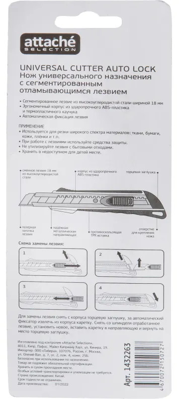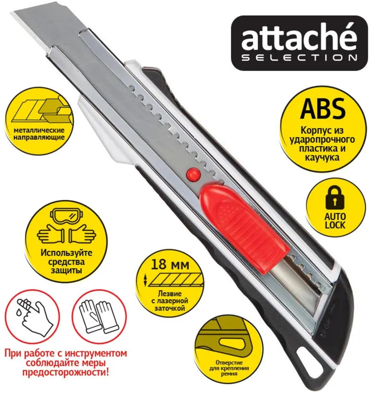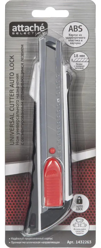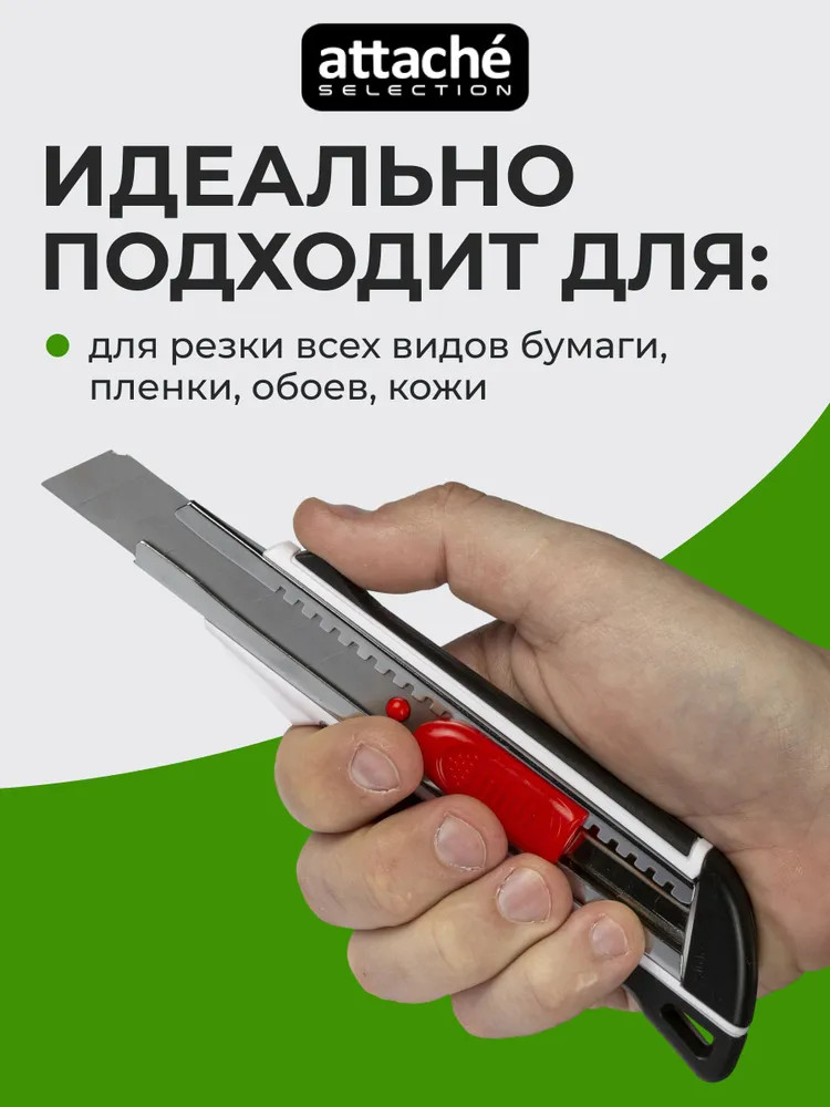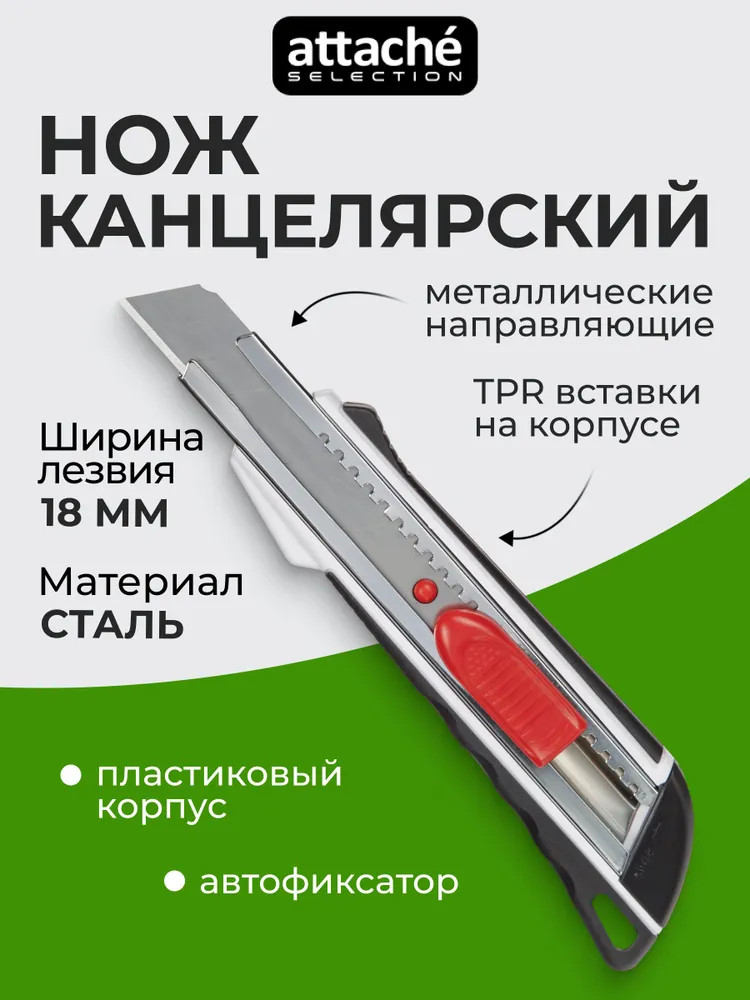 💳 Оплатить за товар можно при получении 🇰🇿 Есть бесплатная доставка по Казахстану от 1 дня 🎁 Копите бонусы с каждой покупки Нож универсальный Attache Selection с сегментированным отламывающимся лезвием. Используется для резки широкого спектра материалов: ткани, бумаги, кожи, пленки и т. п. Эргономичный, надежный корпус с вставками из термопластичного каучука (TPR вставка) препятствующих скольжению пальцев. Металлическая направляющая из нержавеющей стали обеспечивает надежную фиксацию лезвия в момент использования. |