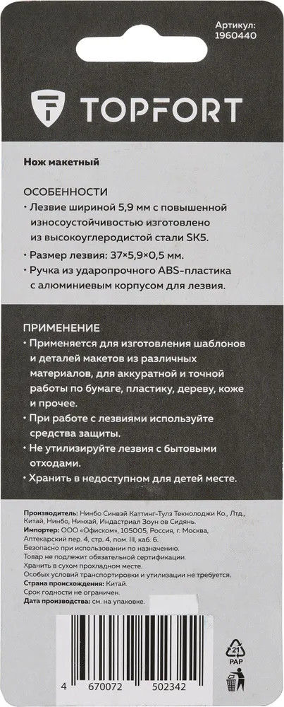 Topfort Нож-скальпель макетный-25% +30