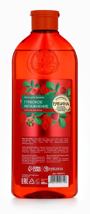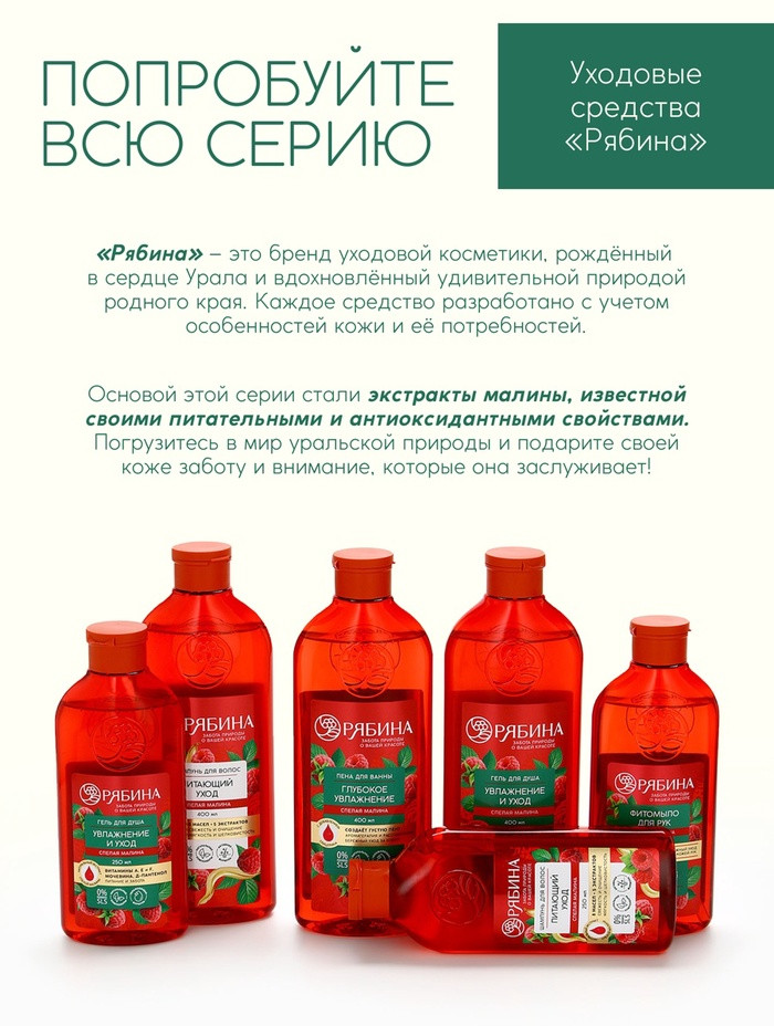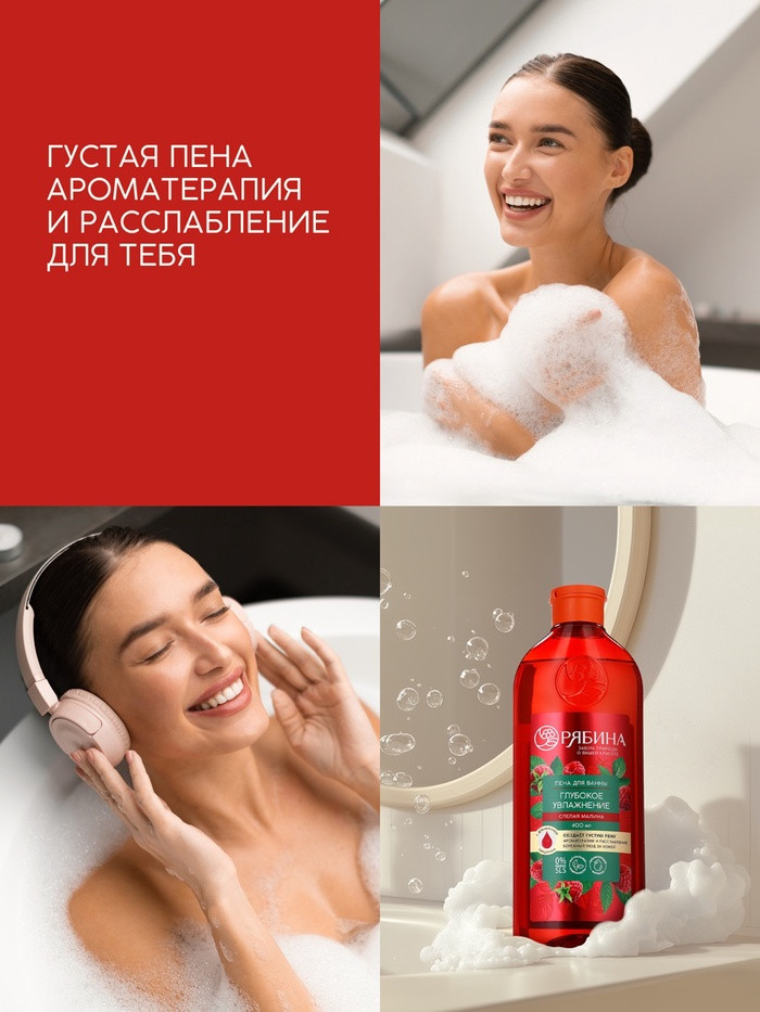 Рябина Пена для ванны с ароматом малины «Глубокое увлажнение»