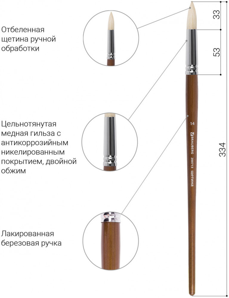 Brauberg Кисть художественная профессиональная №14