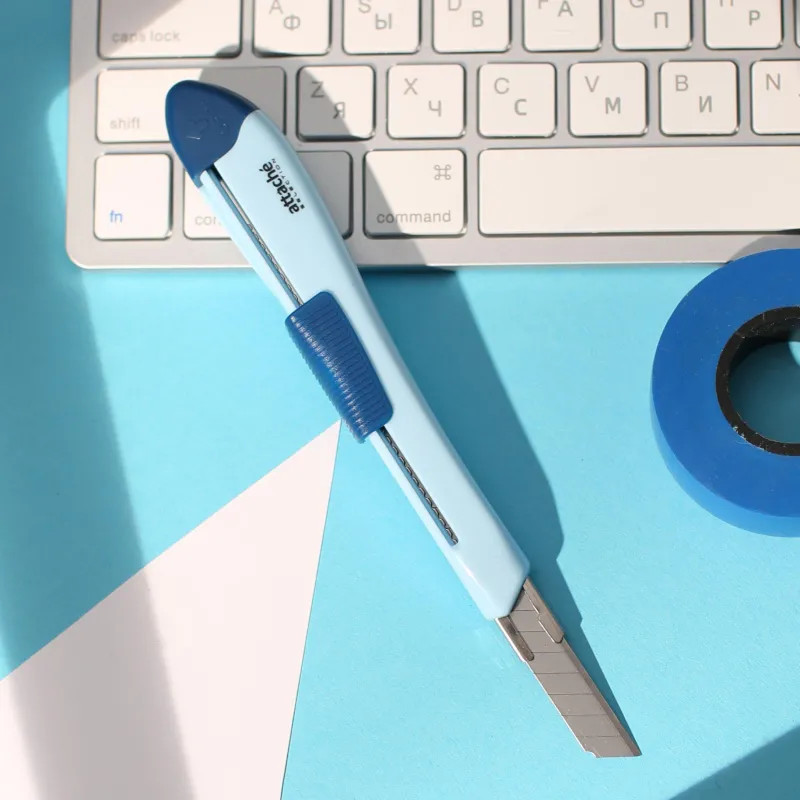 💳 Оплатить за товар можно при получении 🇰🇿 Есть бесплатная доставка по Казахстану 🎁 Копите бонусы с каждой покупки Нож канцелярский — полезная и удобная вещь для точной и аккуратной работы. Он оснащён эргономичной рукояткой и острым сегментированным лезвием, ширина которого — 9 мм, а толщина — 0.4 мм. Такой инструмент без труда справляется с различными материалами. Корпус канцелярского ножа выполнен из пластика. Материал лезвия — сталь. Нож канцелярский строительный отличается высокой прочностью. Поэтому он будет долгое время радовать в работе. Кроме того, у ножа есть механизм фиксации лезвия, тип — защелка. Он позволяет без труда отрегулировать длину режущей части и надёжно закрепить её положение. Инструмент отлично подходит, например, для резки бумаги, пленки, ленты стрейч, кожи, для складских работ, а также для проведения ремонтных работ, не требующих приложения больших усилий. |