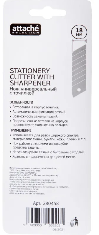 Attache Selection Нож канцелярский с антискользящими вставками и точилкой для карандаша-25% +33