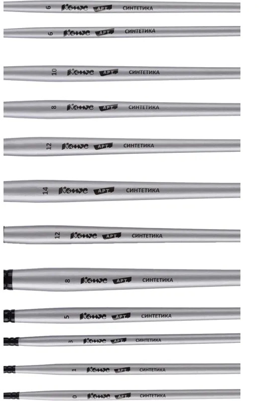 • 12 размеров: в набор входят кисти размеров 0, 1, 3, 5, 6, 8, 10, 12 и 14, что позволит вам работать с разными деталями и форматами;