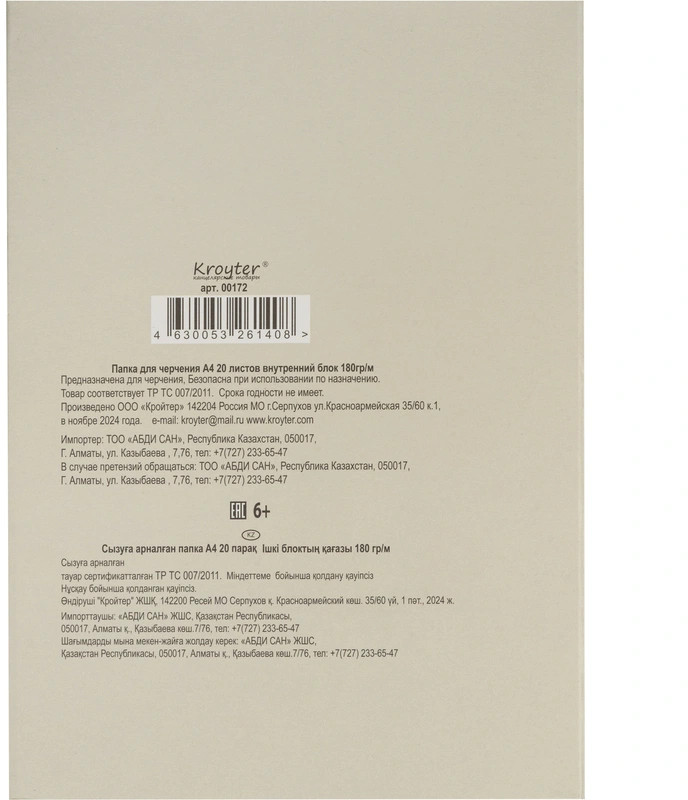 Kroyter Папка для черчения «Сити»В данный момент этот товар отсутствует в продаже. Возможно, у нас найдется аналогичный или похожий товар здесь. Папка для черчения — это универсальный инструмент, который незаменим для школьников и студентов. Она включает 20 листов бумаги формата А4 плотностью 180 г/кв.м и размером 210×297 мм. Листы не имеют рамки и штампа, что делает их универсальными для рисования, черчения и других видов художественных работ. |