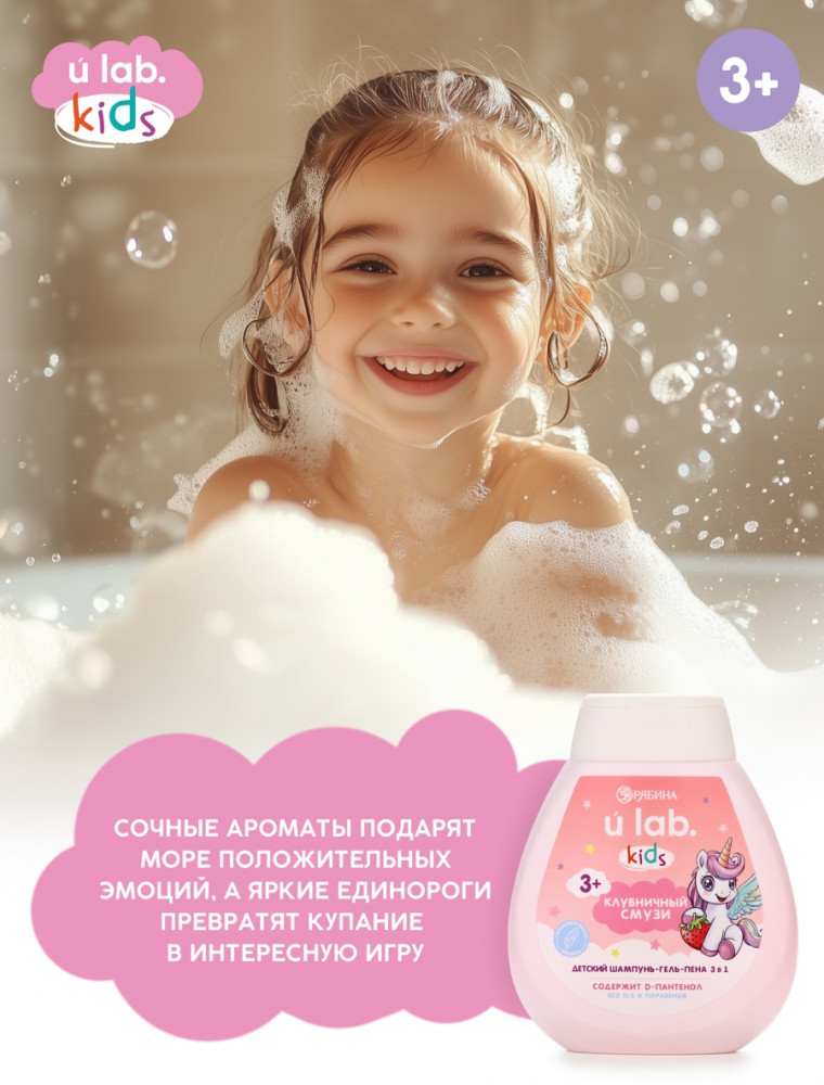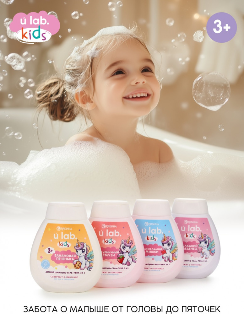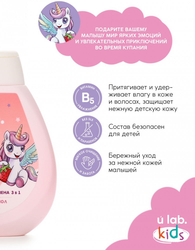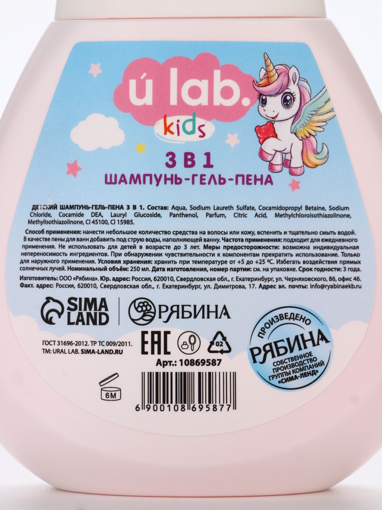 Ural lab Шампунь-гель-пена детский 3 в 1 «Единороги»