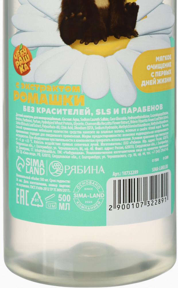 Рябина Шампунь для волос с экстрактом ромашки детский «Чебурашка»-35% +38
