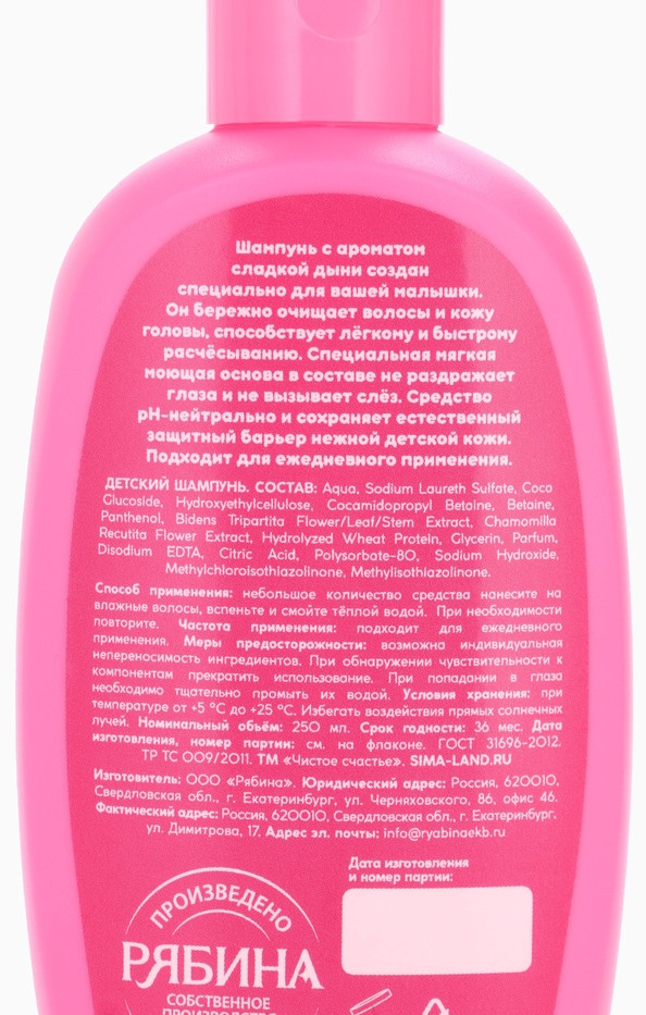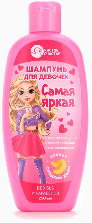 Чистое счастье Шампунь для девочек с ароматом сладкой дыни «Самая яркая»В данный момент этот товар отсутствует в продаже. Возможно, у нас найдется аналогичный или похожий товар здесь. Детский шампунь для девочек «Самая яркая» с ароматом сладкой дыни — это мягкое и деликатное средство для ухода за чувствительной кожей и волосами малышки. Благодаря приятному аромату и нежной формуле, он бережно очищает волосы, придает им мягкость, блеск и свежесть. Идеально подходит для ежедневного использования, делая купание веселым и приятным, а волосы — красивыми и ухоженными. |