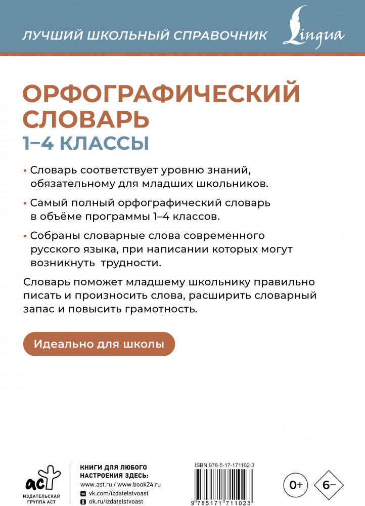💳 Оплатить за товар можно при получении 🇰🇿 Есть бесплатная доставка по Казахстану от 1 дня 🎁 Копите бонусы с каждой покупки Серия: Лучший школьный справочник Юлия Владимировна Алабугина — лингвист, преподаватель, кандидат филологических наук, автор словарей, методических пособий и научных статей. Словарь содержит более 7 000 слов современного русского языка, включая словарные, при написании которых часто допускаются ошибки. Издание поможет младшему школьнику расширить словарный запас, запомнить правильное произношение и написание слов. Благодаря обширной лексической базе, словарь будет полезен не только в начальной, но и в средней школе. Словарь адресован учащимся младших классов, заботливым родителям и учителям, которые хотят помочь школьникам в изучении русского языка. |