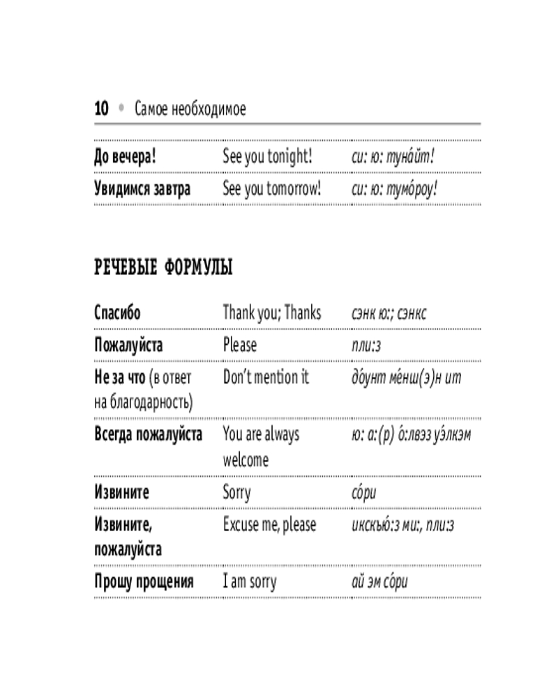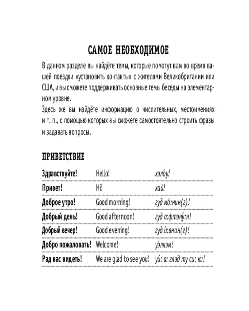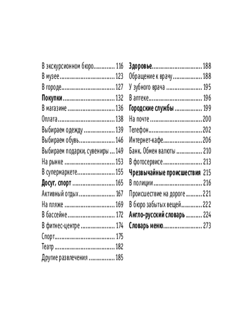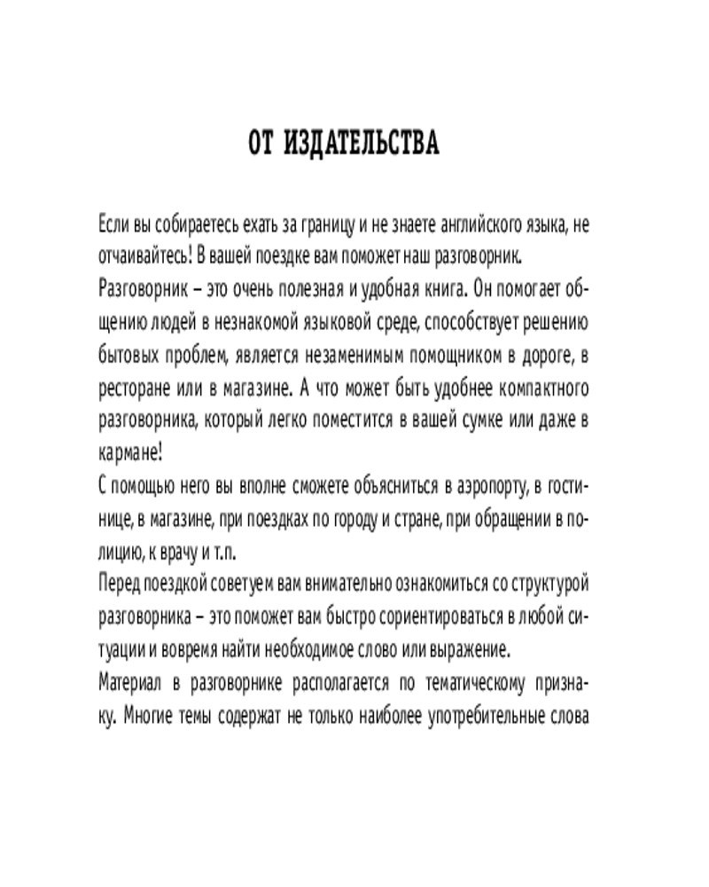 💳 Оплатить за товар можно при получении 🇰🇿 Есть бесплатная доставка по Казахстану от 1 дня 🎁 Копите бонусы с каждой покупки Серия: Современные карманные разговорники Русско-английский разговорник станет для вас незаменимым помощником в путешествиях. В нем есть все самые необходимые темы, без которых не обойтись в зарубежной поездке: проживание в гостинице, поход в магазин и ресторан, поездки в транспорте и на автомобиле, осмотр достопримечательностей, проведение досуга, обращение к врачу, в полицию и т. п. Разговорник дополнен англо-русским словарем и словарем меню. Приятного путешествия! |