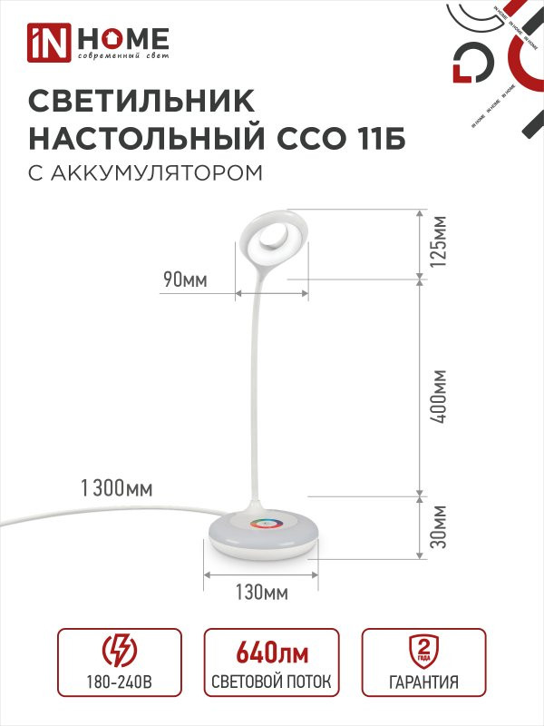 InHome Светильник настольный RGB ССО 11БВ данный момент этот товар отсутствует в продаже. Возможно, у нас найдется аналогичный или похожий товар здесь. Функциональный светодиодный светильник ССО 11 будет отличным дополнением любого интерьера. Светильник имеет удобную конструкцию и может регулироваться по высоте с помощью гибкого держателя. Светильник ССО 11 имеет оригинальную RGB-подсветку, которая дополнит атмосферу уютом. В комплекте со светодиодным светильником ССО 11 USB-micro кабель для подзарядки. Адаптер в комплект не входит. Светильник ССО 11 может использоваться без кабеля с полностью заряженным аккумулятором до 1-2 часов. |