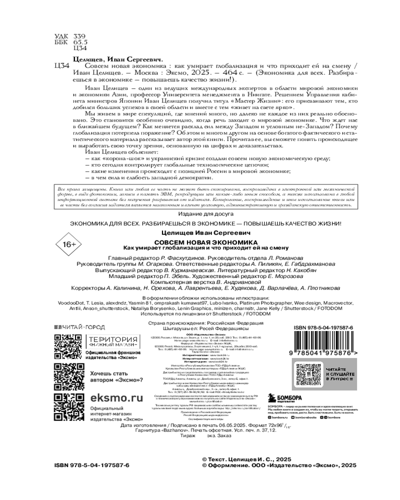 💳 Оплатить за товар можно при получении 🇰🇿 Есть бесплатная доставка по Казахстану от 1 дня 🎁 Копите бонусы с каждой покупки Серия: Экономика для всех Иван Целищев — один из ведущих международных экспертов в области мировой экономики и экономики Азии, профессор Университета менеджмента в Ниигате. Решением Управления кабинета министров Японии Иван Целищев получил титул «Мастер Жизни»: его присваивают тем, кто добился больших успехов в своей области и вместе с тем «живет на свете ярко». Мы живем в мире спекуляций, где мнений много, но далеко не каждое из них реально обосновано. Это становится особенно очевидно, когда речь заходит о мировой экономике. Что ждет нас в ближайшем будущем? Как меняется расклад сил между Западом и условным Незападом? Почему глобализация потерпела поражение? Об этом и многом другом на основе богатого фактического и статистического материала рассказывает автор этой книги. Прочитав ее, вы сможете понять происходящее и выработать свою точку зрения, основанную на цифрах и доказательствах. |