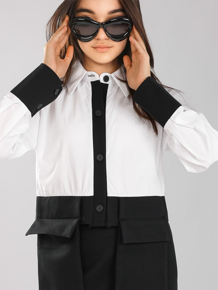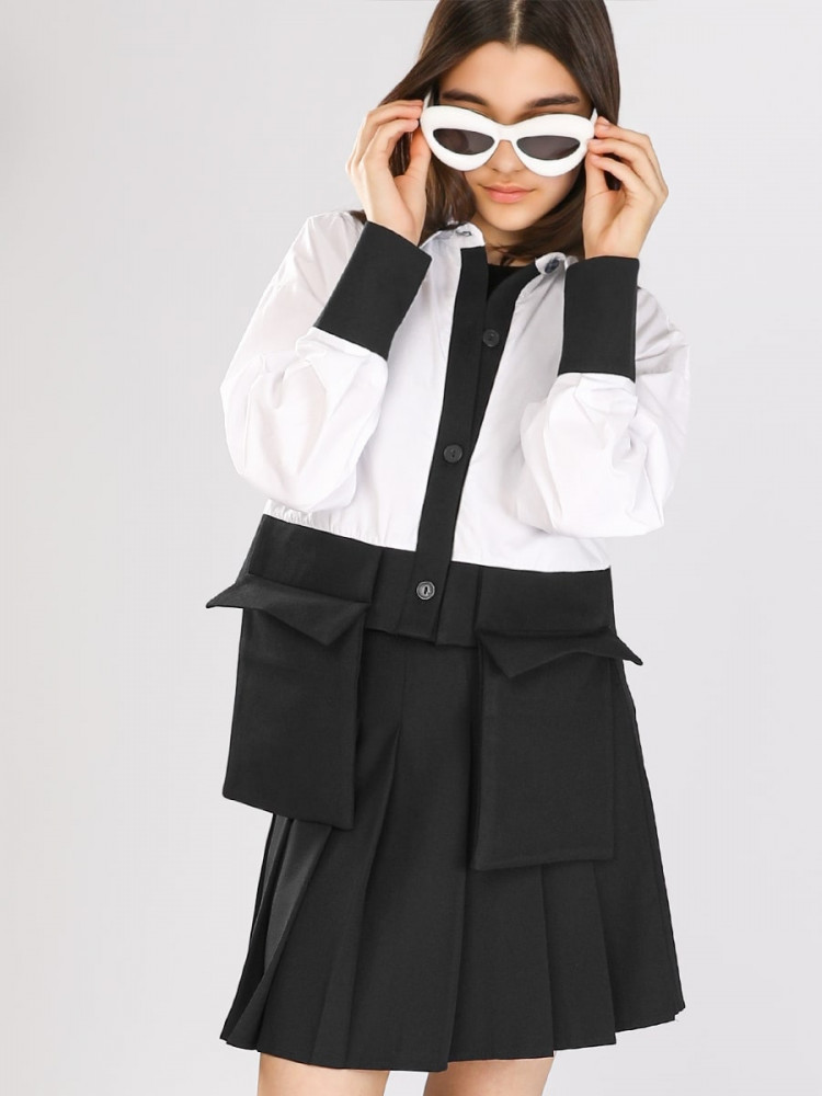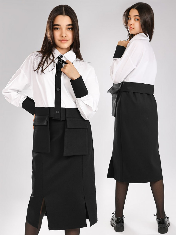 блузка 100% хлопок, юбка 73% хлопок, 22 % полиэстер, 5% полиуретан