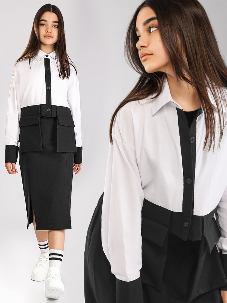 блузка 100% хлопок, юбка 73% хлопок, 22 % полиэстер, 5% полиуретан