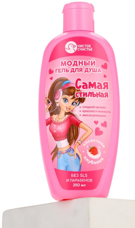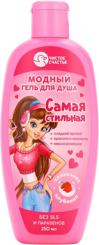 Чистое счастье Гель для душа с ароматом сливочной клубники детский «Самая стильная»-25% +10