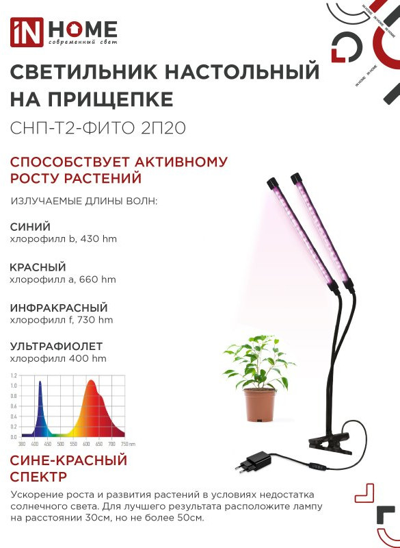 InHome Светильник настольный на прищепке светодиодныйВ данный момент этот товар отсутствует в продаже. Возможно, у нас найдется аналогичный или похожий товар здесь. Светильники СНП-Т2-ФИТО на прищепке с красно-синим спектром предназначены для ускорения роста и развития растений, эффективны в сочетании с естественным дневным светом. Пульт управления с тремя режимами свечения — красным, синим и красно-синим, таймером на 3, 9, 12 часов и регулировкой яркости позволит выбрать оптимальный вариант использования. Прищепка из ABS пластика обеспечит надежную фиксацию на любой поверхности, благодаря высоте захвата до 30 мм. |