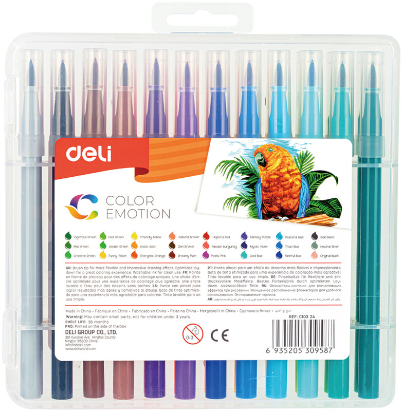 DELI Фломастеры смываемые «Color Emotion»В данный момент этот товар отсутствует в продаже. Возможно, у нас найдется аналогичный или похожий товар здесь. Цветные фломастеры на спиртовой основе предназначены для рисования на бумаге. Имеют смываемые чернила. Корпус фломастеров выполнен в круглой форме. Вентилируемый колпачок обеспечивает безопасность при использовании ребёнком (благодаря отверстиям он не перекроет доступ кислорода в случае попадания в дыхательные пути). Подходят для детей от 3 лет. Поставляются в прочном пластиковом боксе с европодвесом. Такой дизайн незаметно приучает юных художников поддерживать порядок на своём рабочем месте, что способствует развитию у детей полезных привычек и организованности. |