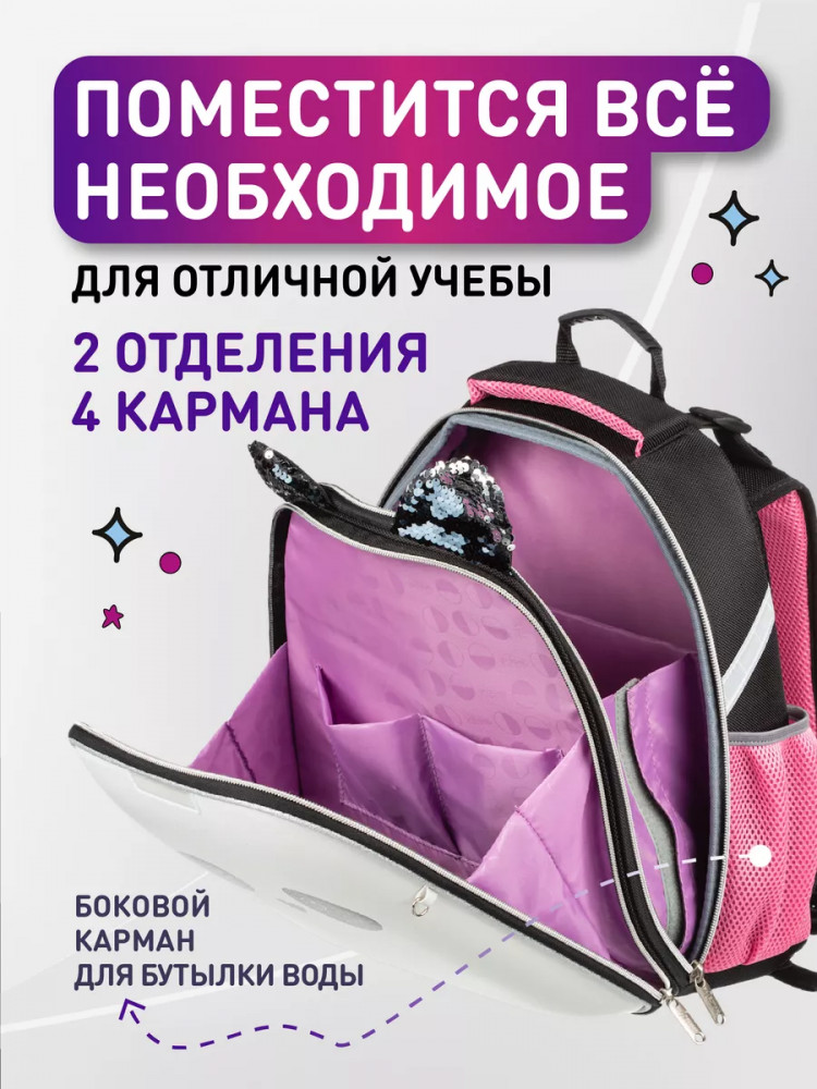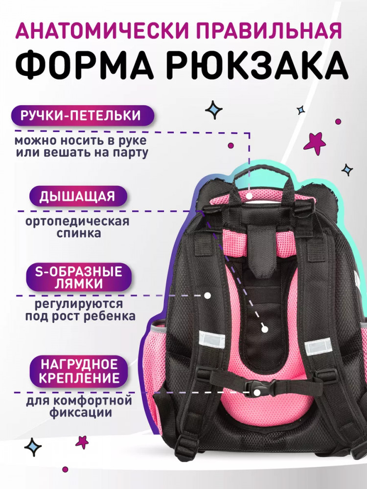 💳 Оплатить за товар можно при получении 🇰🇿 Есть бесплатная доставка по Казахстану от 1 дня 🎁 Копите бонусы с каждой покупки Серия: Basic Ранец эргономичной обтекаемой формы. Прочная конструкция ранца надежно защищает его содержимое за счет плотного формованного материала. Жесткая анатомическая спинка с мягкими вставками с поддержкой в области поясницы. Широкие удобные лямки из воздухообменного сетчатого материала имеют систему регулировки по росту ребенка, что позволяет добиться наиболее комфортного расположения ранца на спине. Плотное, устойчивое дно на ножках. Ранец имеет два отделения на молнии. В первом отделении — гибкая перегородка, предназначенная для удобного хранения книг и тетрадей. Во втором — сетчатый карман. Также на ранце по бокам расположены сетчатые карманы для мелких принадлежностей. Светоотражающие элементы для дополнительной безопасности на лицевой стороне, боковых частях ранца, а также на лямках. Основной материал — полиэстер. |