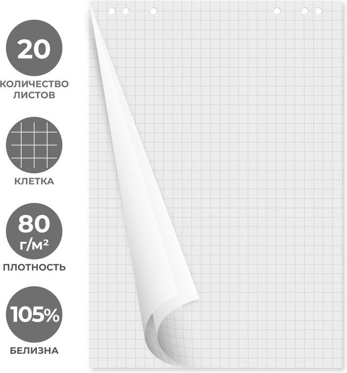 💳 Оплатить за товар можно при получении 🇰🇿 Есть бесплатная доставка по Казахстану от 1 дня 🎁 Копите бонусы с каждой покупки Бумага для флипчартов Attache с универсальной разметкой для крепежных отверстий, разлинованный в клетку. Цвет белый. Поставляется комплектами по 5 блоков, в каждом блоке содержится по 20 листов белого цвета размером 67,5×98 см. Размер клетки ориентировочно 25×25 мм. |