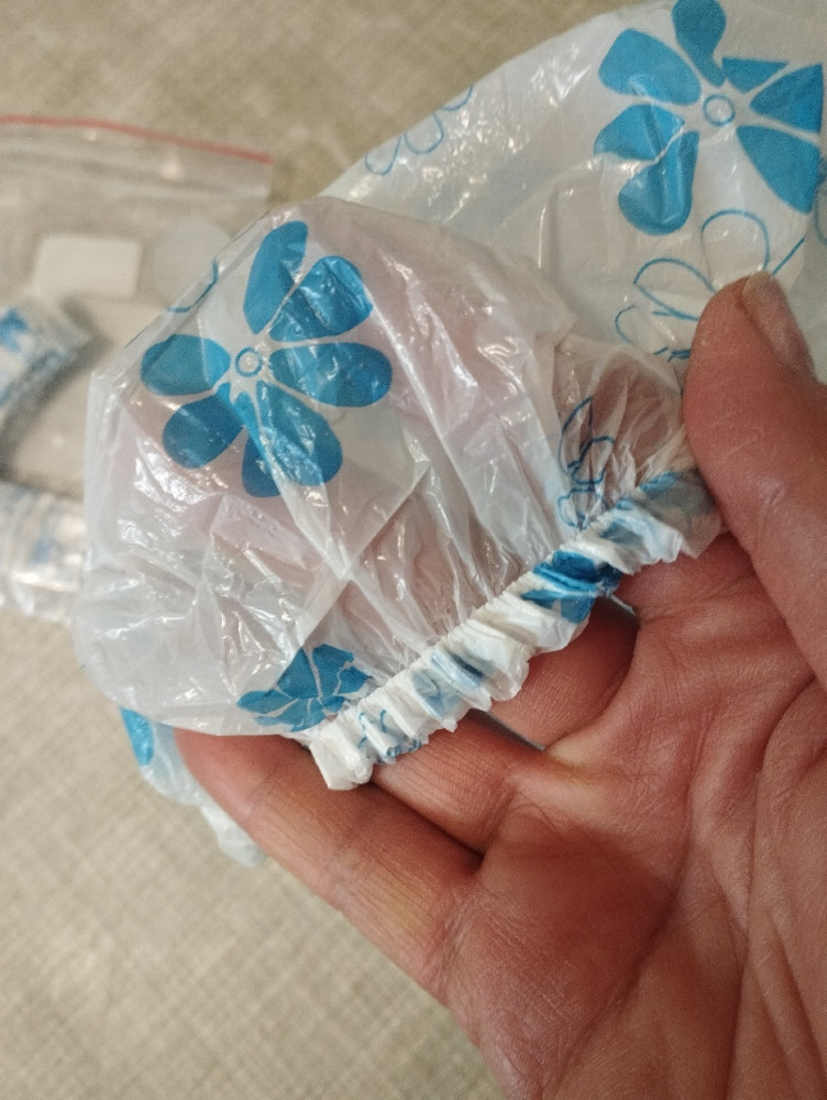 мне они напомнили бахилы. но пока выполняют свою задачу. у меня стрижка каре. было бы волос больше, наверное они не поместились бы в шапочку.