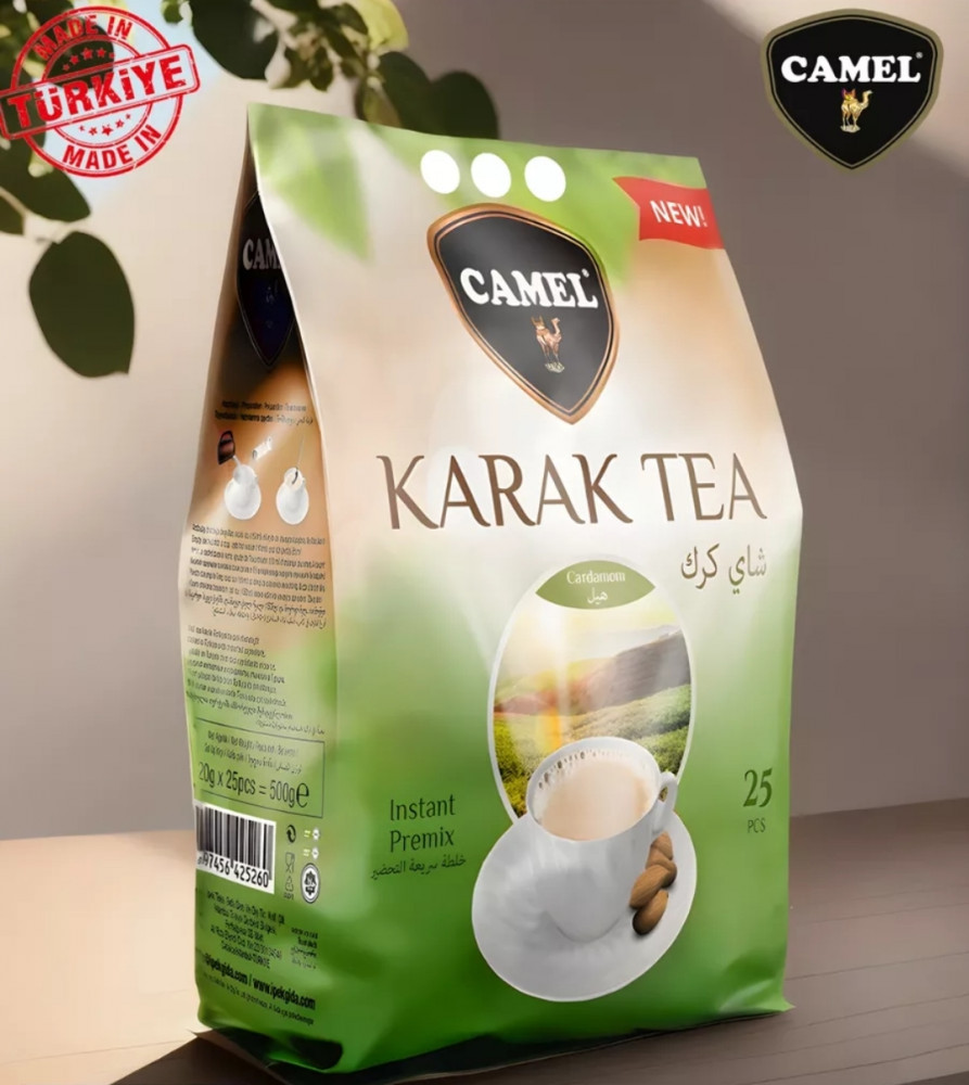 Приготовить чашечку ароматного чая еще никогда не было так просто и быстро! Представляем вам растворимый чай 3 в 1 от турецкого производителя Camel. Каждая упаковка содержит 20 порций по 25 грамм, что обеспечивает вам несколько недель запаса любимого напитка. Состав чая включает в себя отборный чай, нежные сухие сливки, сахар и ароматный кардамон. Благодаря этому сочетанию вам не придется дополнительно добавлять молоко или сахар - напиток уже готов к употреблению. Удобный формат упаковки позволит вам взять чай с собой в любое место, будь то офис, поездка или пикник на природе. Просто разлейте содержимое в чашку с горячей водой, и наслаждайтесь ароматом и вкусом свежего чая с молоком в любое время дня. Выбирайте качественный растворимый чай 3 в 1 от Camel и наслаждайтесь неповторимым вкусом и ароматом. Это идеальный выбор для настоящих ценителей чая с молоком.