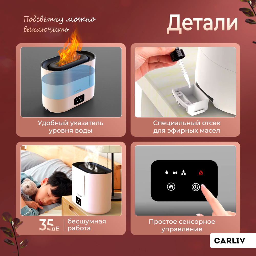 Создайте уютную атмосферу в вашем доме с увлажнителем воздуха с эффектом пламени. Этот стильный и функциональный прибор не только улучшает качество воздуха, но и привносит в интерьер уникальный элемент декора. Увлажнитель доступен в разных цветах, что позволяет выбрать идеальный вариант для любого стиля оформления.