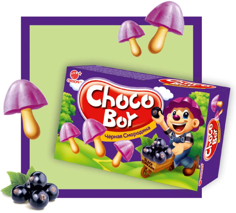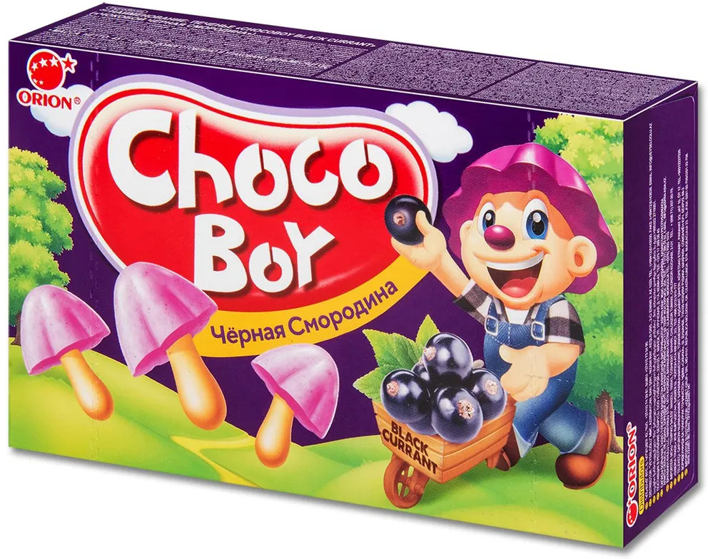 Orion Печенье-грибочки «Choco Boy Black currant. Чёрная смородина»