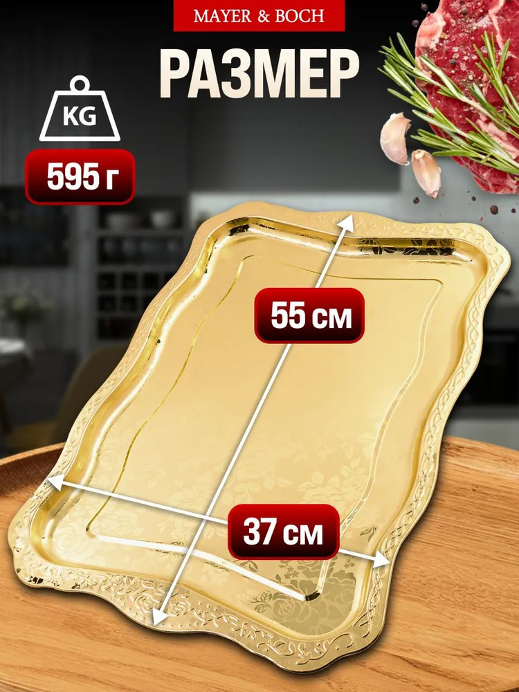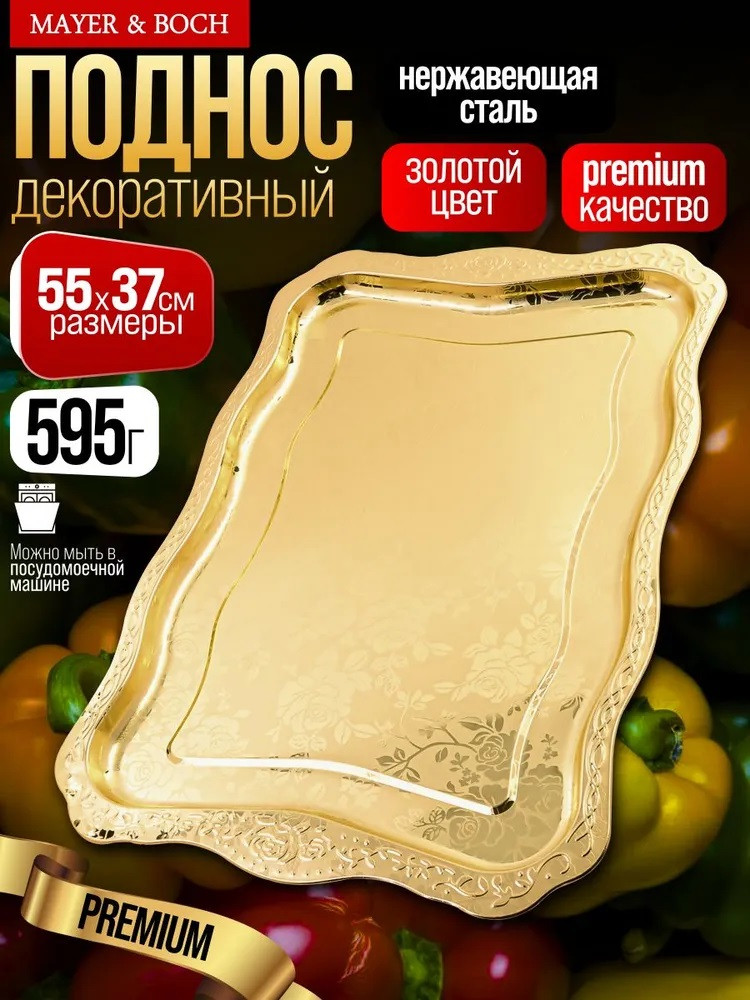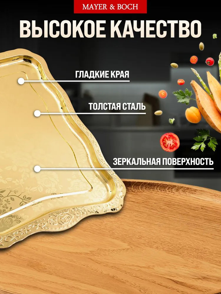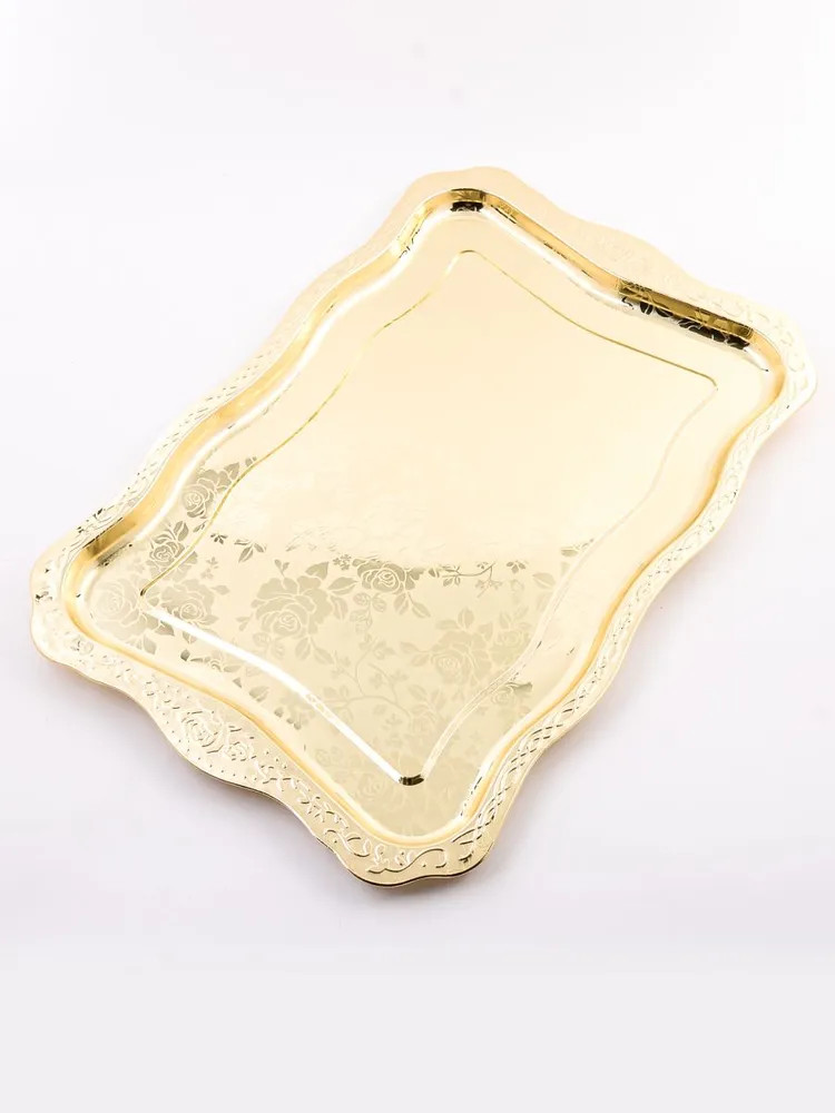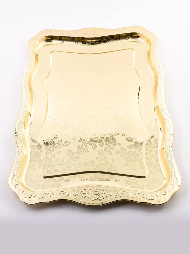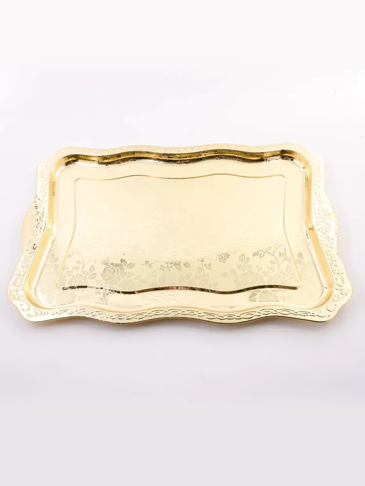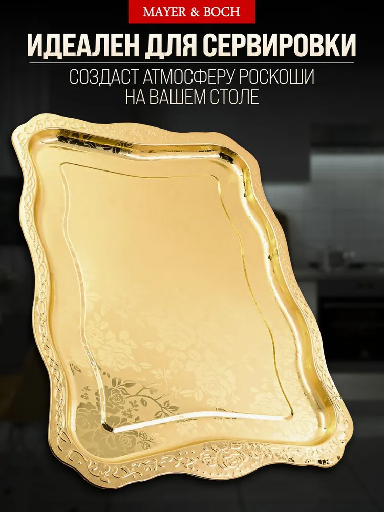 Элегантный прямоугольный поднос, выполненный из высококачественной нержавеющей стали, станет изысканным дополнением вашего интерьера. Золотое покрытие и глянцевый рисунок из роз придают ему роскошный вид, а волнистые края добавляют изюминку. Этот поднос не только красив, но и практичен, идеально подходит для сервировки напитков, закусок или в качестве стильного элемента декора. Представьте себе, как солнечные лучи играют на золотой поверхности подноса, отражаясь от глянцевых лепестков роз. Он словно создан для того, чтобы стать центром внимания на вашем столе, притягивая взгляды и вызывая восхищение. Используйте его для подачи утреннего кофе с круассанами, создавая атмосферу парижского кафе прямо у себя дома. Или сервируйте на нем изысканные канапе и шампанское для вечернего приема гостей, демонстрируя свою утонченность и гостеприимство.