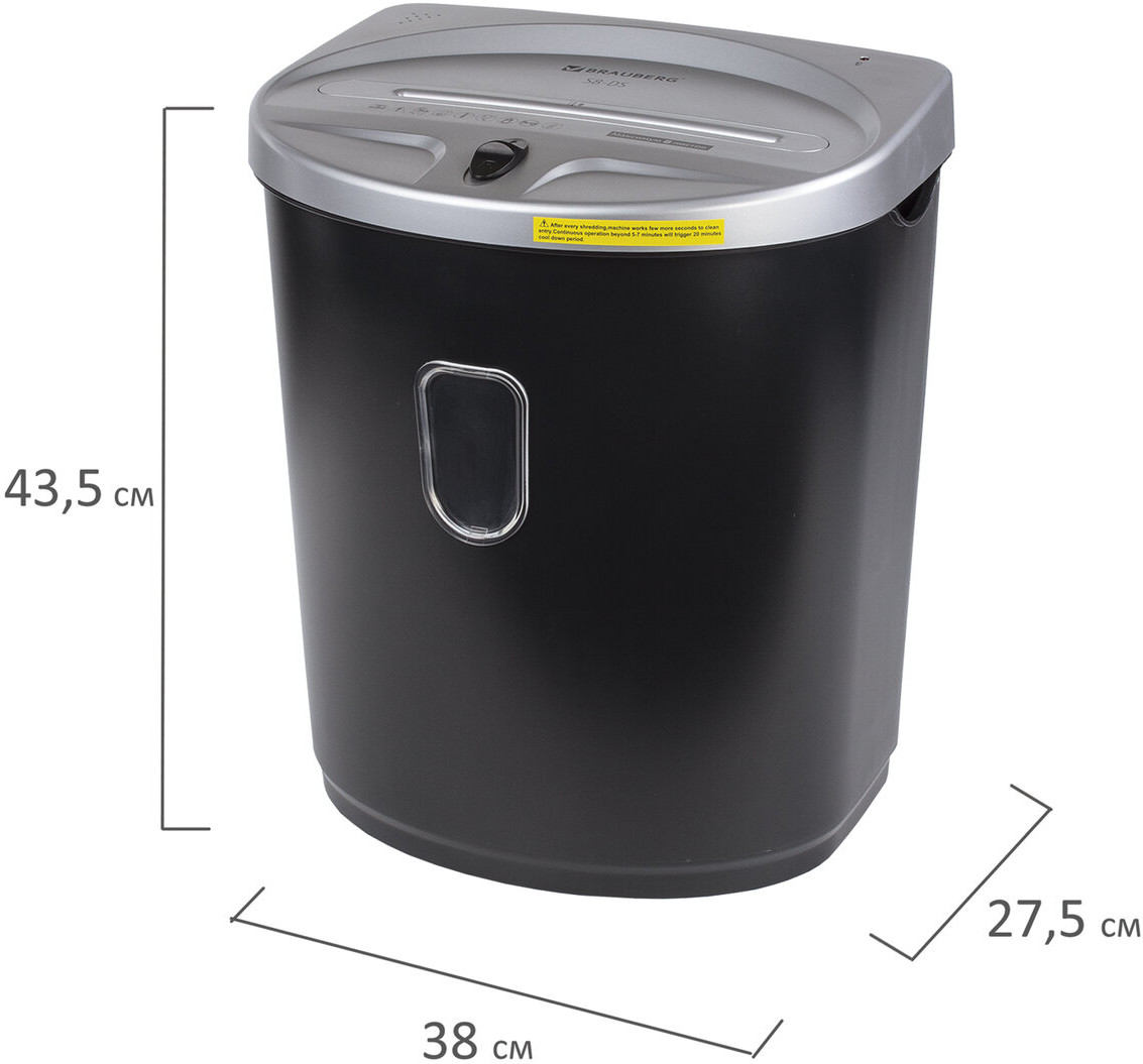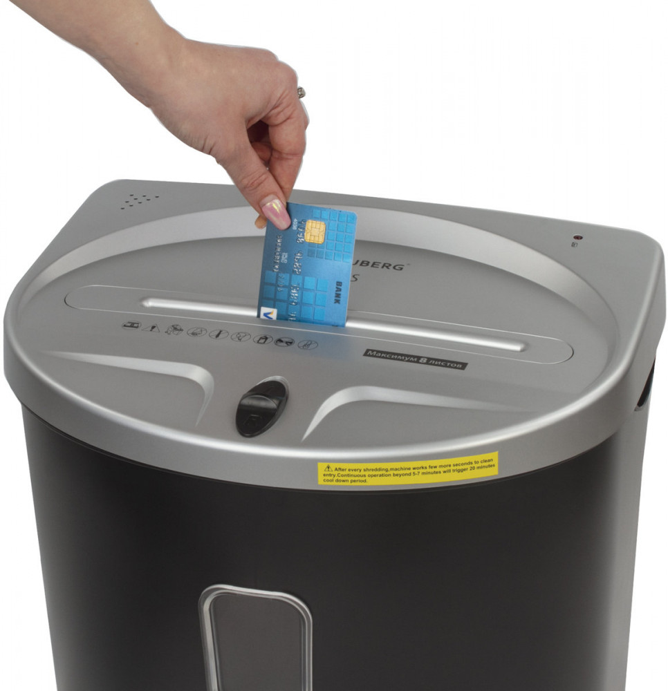 💳 Оплатить за товар можно при получении 🇰🇿 Есть бесплатная доставка по Казахстану от 1 дня 🎁 Копите бонусы с каждой покупки Уничтожитель документов (шредер) Brauberg S8-DS предназначен для уничтожения документов и пластиковых карт (банковских, дисконтных и прочих), потерявших актуальность. Отлично подходит для интенсивного персонального использования или коллективного использования в небольшом офисе. Резка на полоски размером 4 мм обеспечивает P-2 уровень секретности (DIN 66399). Рекомендуемое количество пользователей — 3-5 человек. За один раз уничтожает 8 листов формата А4. Объем корзины составляет 23 л. |