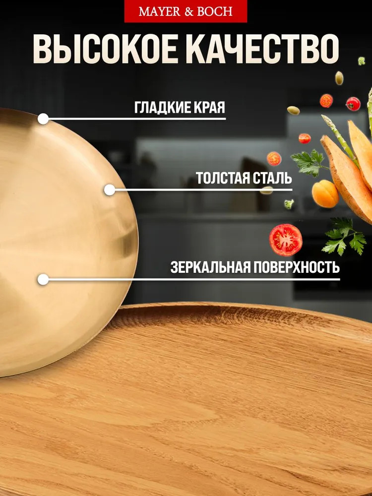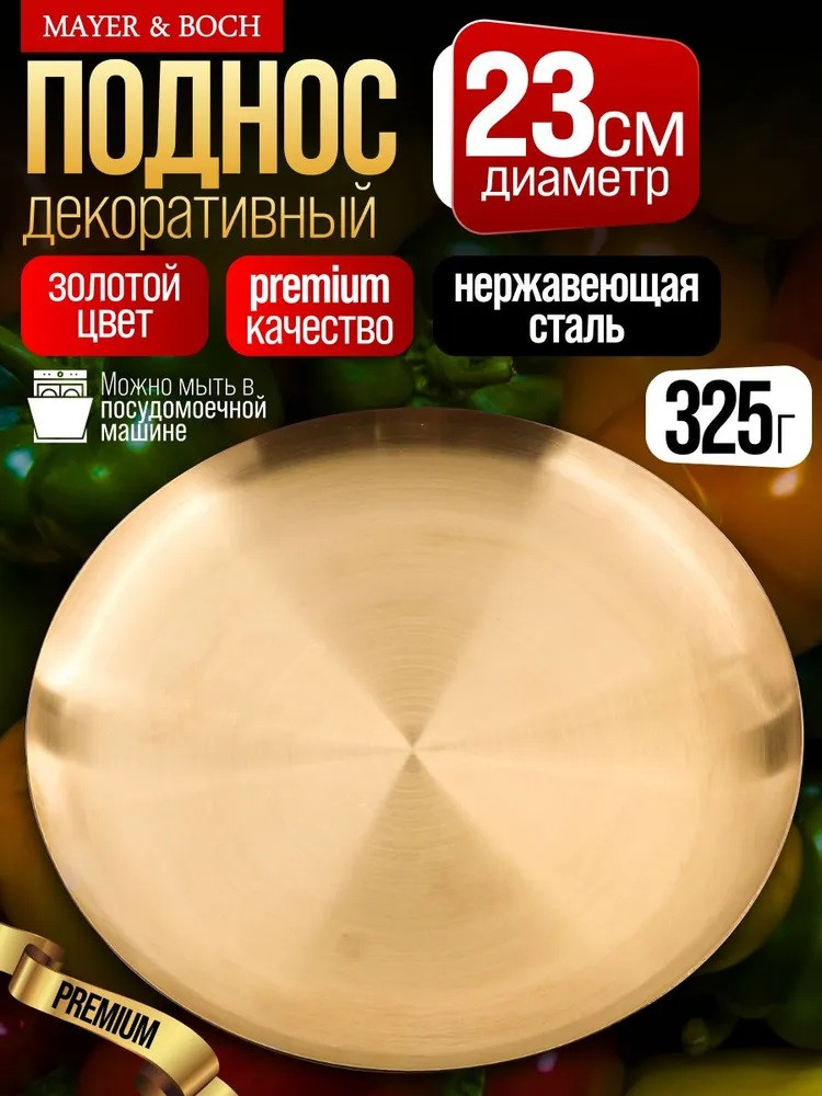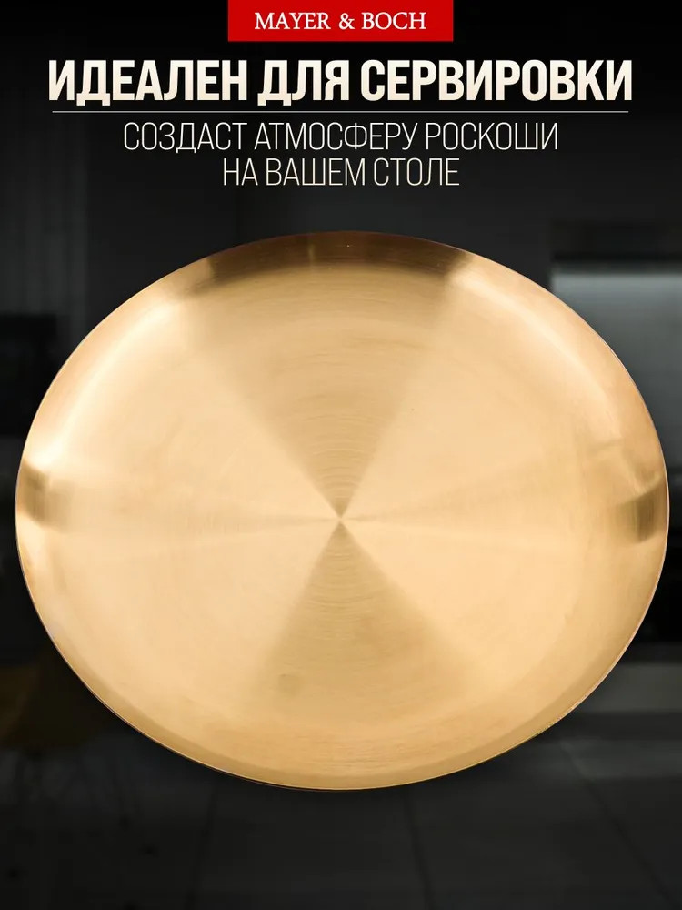 Представьте себе элегантный поднос, сверкающим золотым блеском. Изготовленный из высококачественной нержавеющей стали, он станет прекрасным дополнением к вашей кухне и поможет создать неповторимую атмосферу во время сервировки стола. Его прочная конструкция гарантирует долговечность, а стильный дизайн идеально подходит для презентации самых разных угощений. На этом подносе можно с изыском подать закуски, сладкие десерты, сочные фрукты или напитки. Благодаря практичности и красивому внешнему виду, он станет незаменимым помощником как на повседневной кухне, так и во время торжественных мероприятий.