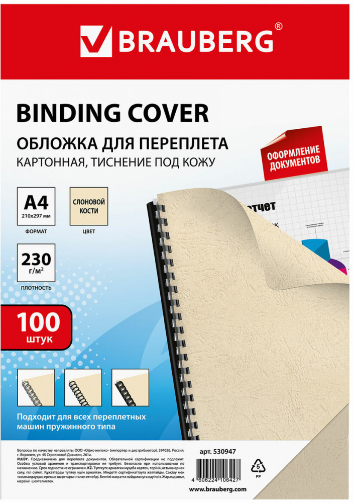 💳 Оплатить за товар можно при получении 🇰🇿 Есть бесплатная доставка по Казахстану от 1 дня 🎁 Копите бонусы с каждой покупки Обложки для переплета Brauberg придадут документам эстетичный внешний вид и защитят от повреждений. Предназначены для переплета документов брошюровщиком с помощью пластиковых и металлических пружин. Актуальны для создания деловых брошюр. |