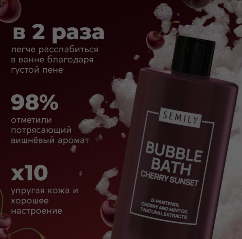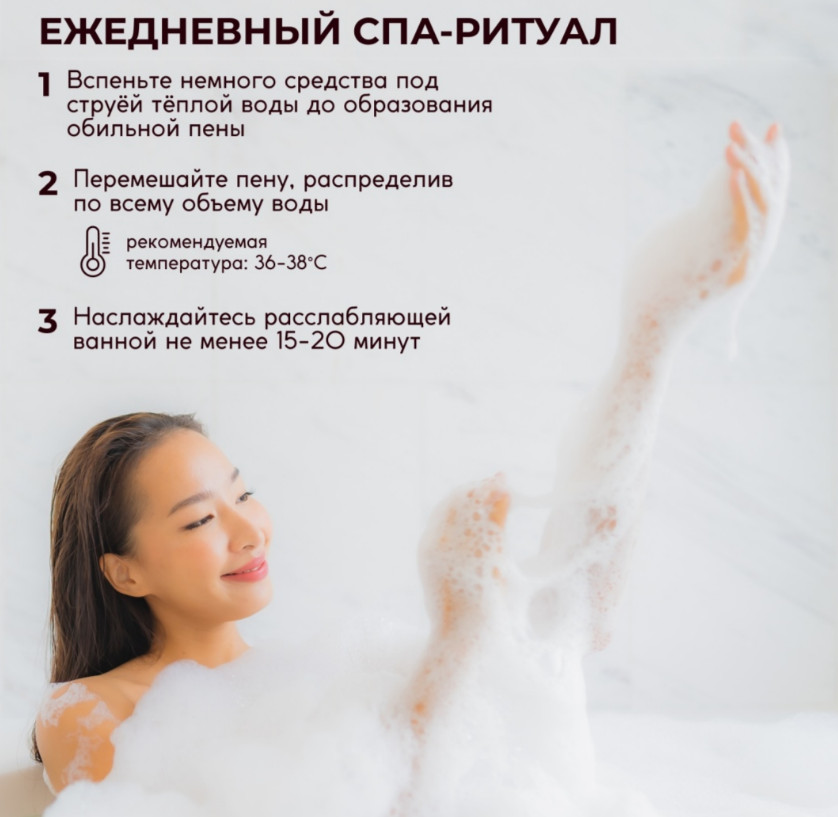 💳 Оплатить за товар можно при получении 🇰🇿 Есть бесплатная доставка по Казахстану от 1 дня 🎁 Копите бонусы с каждой покупки Нежная пена для ванн окутывает воздушным облаком пены и способствует полному расслаблению и снятию напряжения после трудного дня. Натуральные масла мяты и вишневых косточек бережно заботятся о вашей коже, делая ее более гладкой и шелковистой, входящие в состав экстракты растений увлажняют и успокаивают кожу. |