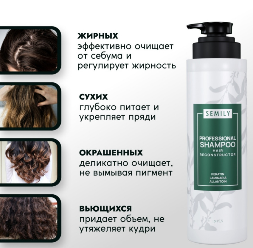 Semily Шампунь для волос кератиновый восстанавливающий «Hair Reconstructor»
