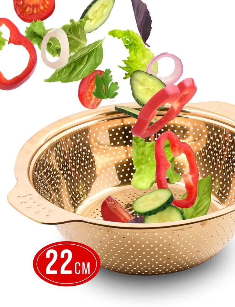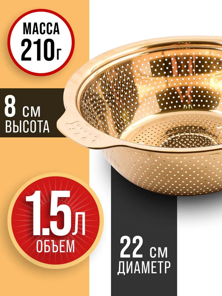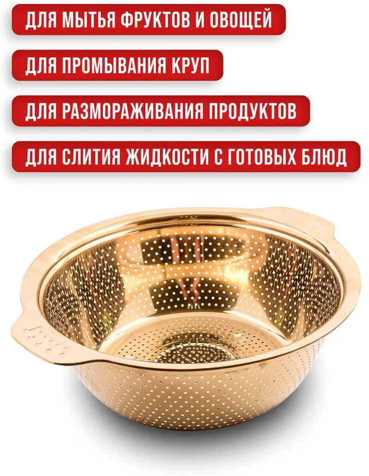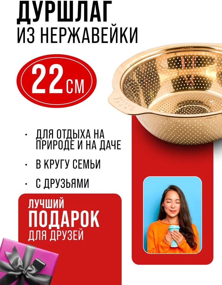 Дуршлаг с ручкой имеет две удобные ручки, а благодаря ножке его можно установить прямо в раковине. Он легко моется в посудомоечной машине и может использоваться как сушилка для овощей и фруктов. Кухонное сито идеально подходит для разморозки мяска и рыбки. Фруктомойка оснащена маленькими отверстиями и ее удобно брать с собой на природу. Универсальную стальную рисомойку можно мыть в посудомоечной машине. Эта универсальная чаша-дуршлаг создана для эффективного процеживания и комфортного использования на кухне. Дуршлаг можно применять как корзинку для фруктов. Подарите его своей любимой женщине, маме, бабушке, подруге, сестре, коллеге на Новый год, Рождество, день рождения, юбилей, 8 Марта, новоселье или другой праздник. Этот практичный подарок обязательно порадует любую хозяюшку.