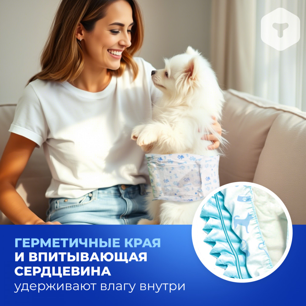 Одноразовые пояса для собак PetCube — это удобные супервпитывающие подгузники для кобелей, которые обеспечивают комфорт и защиту в любых ситуациях. Они выполнены из мягкого материала с внутренним слоем, который всегда остается сухим. Пятислойная структура с абсорбирующей сердцевиной моментально впитывает жидкость, превращает ее в гель и надежно удерживает внутри, не допуская протеканий. Эластичный пояс плотно и комфортно облегает тело животного, не стесняет движения и подходит даже для активных собак.