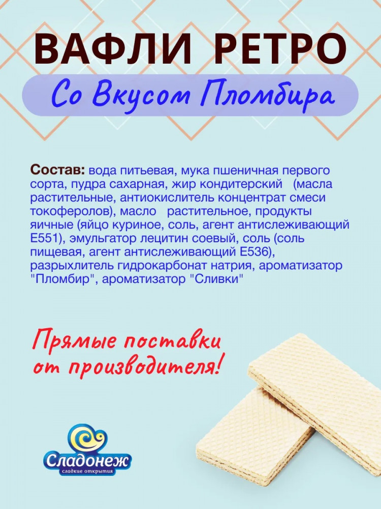 Сладонеж Вафли со вкусом пломбира «Ретро»